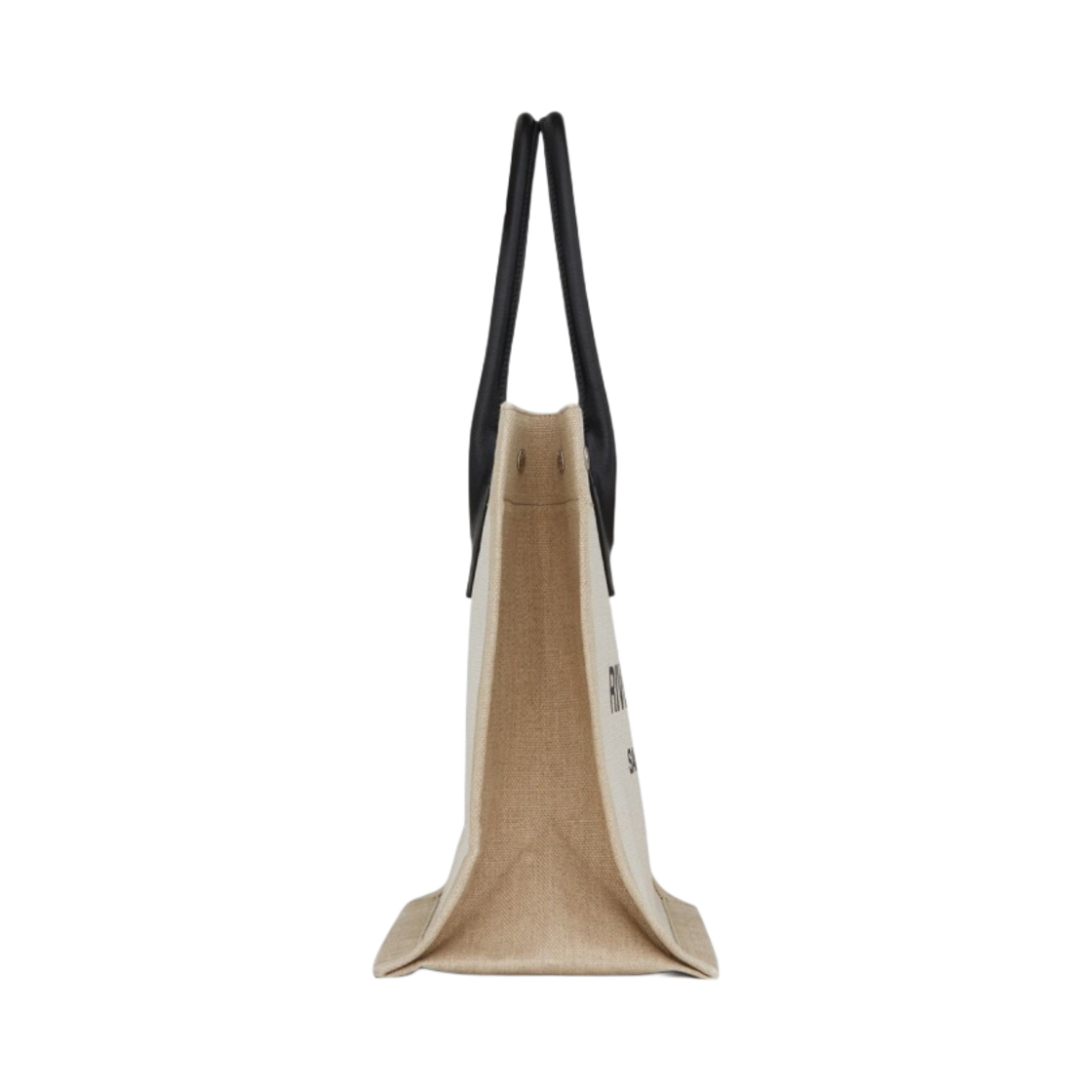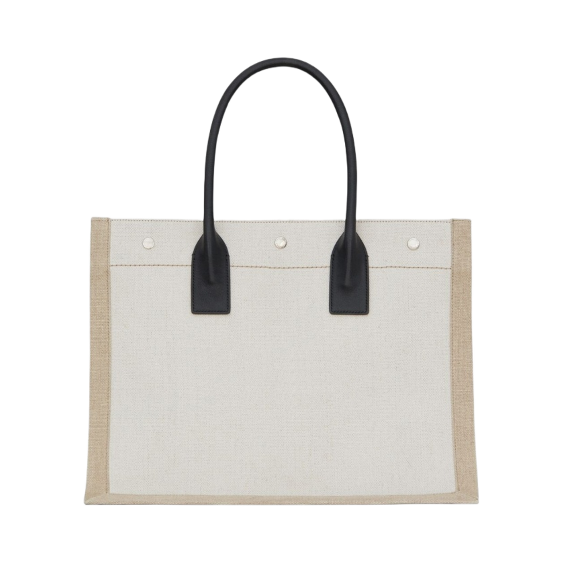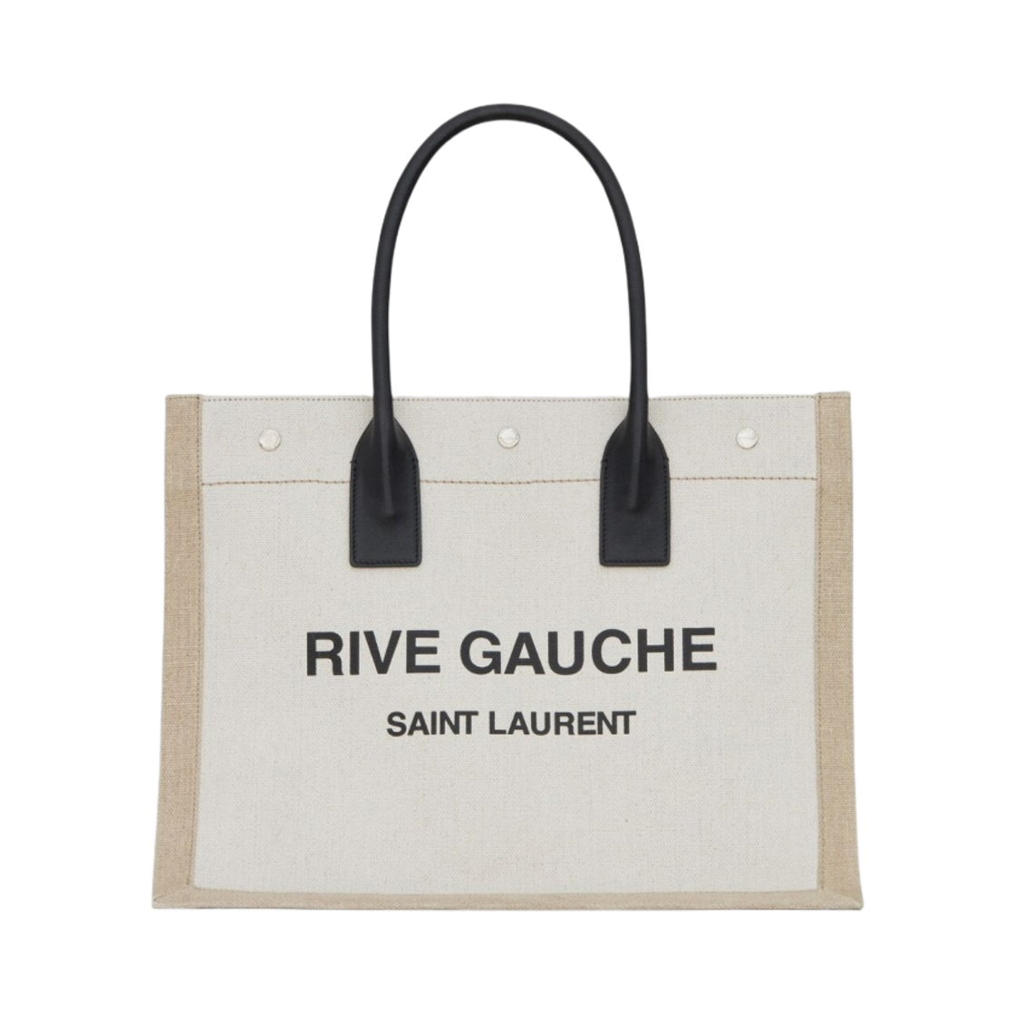 Saint Laurent Rive Gauche Small Tote Bag in Linen and Leather Grege Black Natural Black