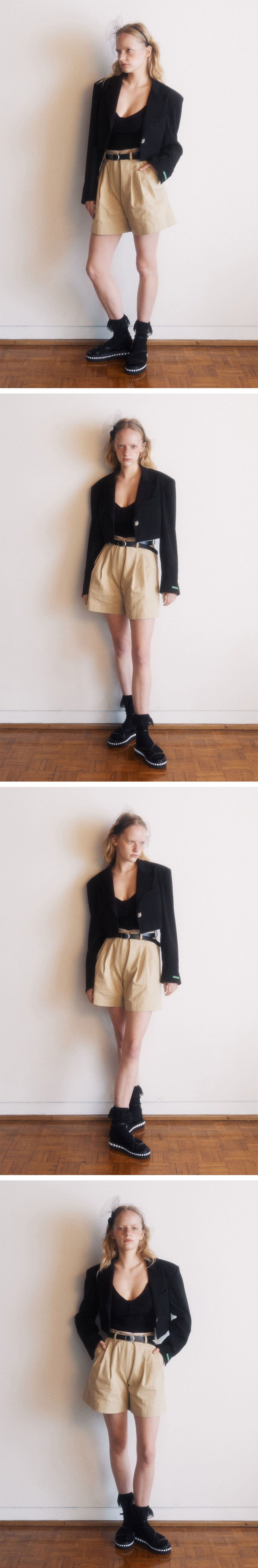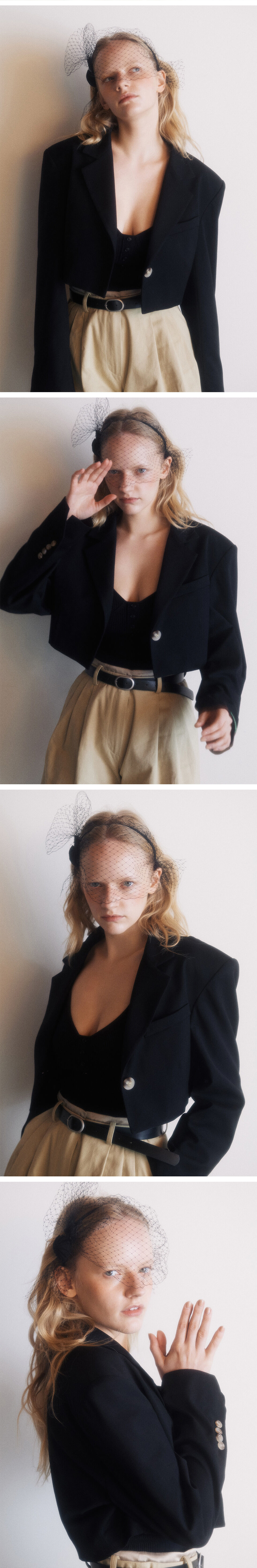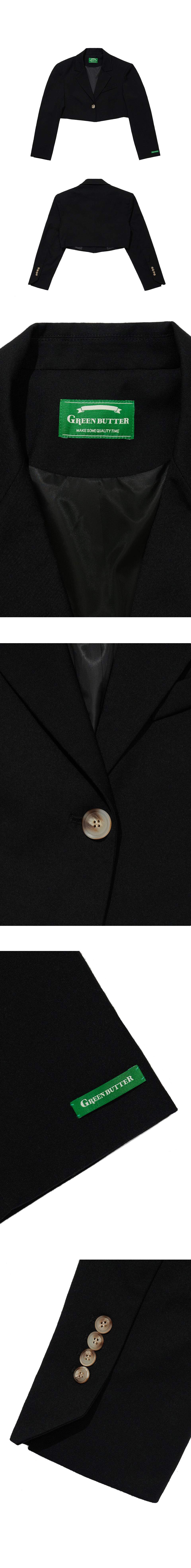 크롭기장의 자켓이며 살짝 여유있는 어깨품의 디자인으로, 어깨패드를 넣어 어깨를 쳐지지않도록 했습니다. 찰랑거리는 듯 부드러운 터치감이지만 탄탄한 원단을 채용해 어깨에서 소매로 이어지는 실루엣에 중점을 둔 디자인입니다. 소매밑단에 그린버터의 그린라벨을 부착하였고, 소매끝의 각진 트임형태가 돋보이는 제품입니다.