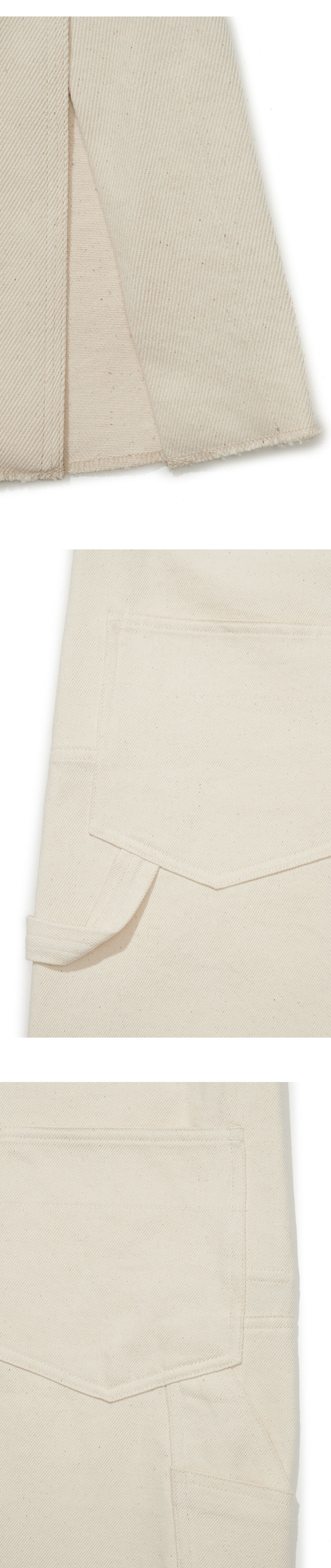 형태가 돋보이는 단추를 사용한 면원단의 멜빵원피스입니다. 긴 기장감이 특징이며 밑단 한쪽에 트임을 주어 활동에 불편함이 없도록 하였고, 양쪽에 위치한 여러형태의 주머니들과 끈장식으로 포인트를 주었습니다.