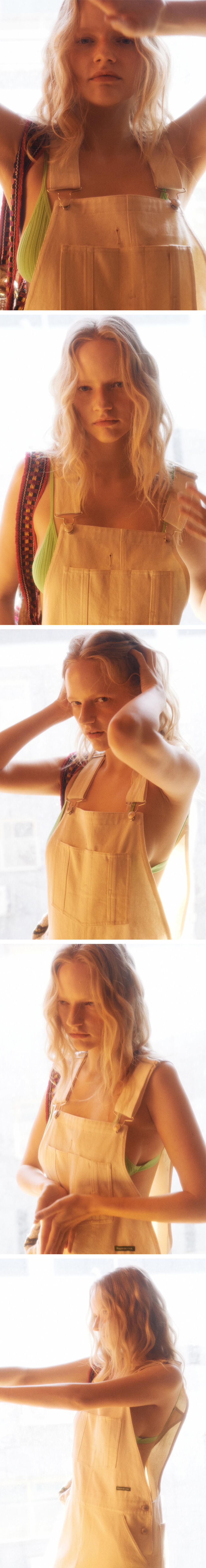 그린 버터 우먼 코튼 해머 루프 오버롤 드레스 베이지