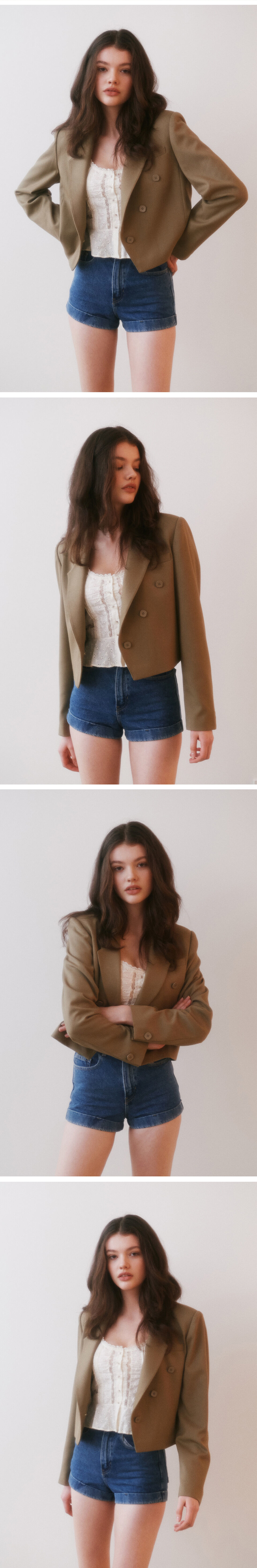 그린 버터 우먼 브이슬릿 스퀘어 버튼 크롭 자켓 베이지