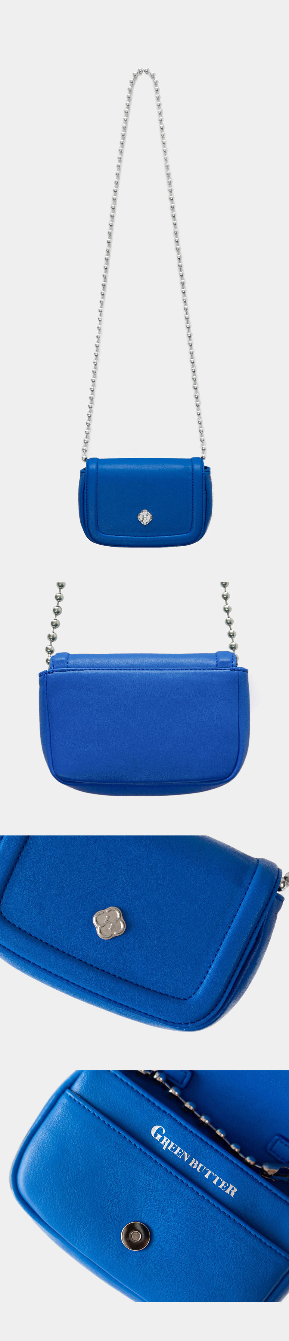 플랩 디자인의 귀여운 체인 미니백입니다. 은은한 광택의 크랙 레더 소재가 히어리의 시그니처 장식과 그린버터만의 컬러감이 더해져 빈티지한 무드를 자아냅니다. 서지컬스틸 소재의 체인 스트랩은 사틴 가공되어 내구성이 좋고 변색이 없어 관리가 용이합니다. 스트랩은 크로스와 탑핸들, 두 가지 방식으로 활용이 가능합니다. 내부는 실버 컬러의 그린버터 로고로 포인트를 주었으며, 히어리 시그니처 옐로우 컬러의 안감에 메인 수납칸, 카드 수납칸으로 구성되어 핸드폰 및 카드지갑을 넉넉하게 수납할 수 있습니다.