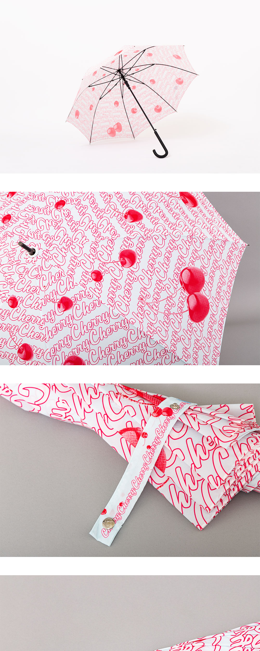사랑스러운 체리를 가득 담은 Cheery Umbrella 입니다. 2. 우산 대가 휘지 않도록 충격에 주의하여 주세요. 3. 사용 후 습기가 없는 그늘에 말려 보관해 주세요. 4. 날카로운 것에 닿을경우 원단이 훼손될수 있으니 주의하여 주시고 화기 근처에 가까이 두지 마세요. 5. 장마철의 폭우나 강수량이 많을 경우 원단이나 재봉선 사이로 물이 흐를 수 있으나 이는 우산의 특성으로 불량이 아닙니다.(누수가 심각한 경우, 영상 및 사진 첨부 부탁드리겠습니다.) ※배송 중 손상되었거나 제품의 성능에 이상이 있을 경우엔 구입일로부터 7일 이내 교환 가능합니다. ※구매 후 한달 이상 경과된 제품 or 소비자 과실로 인한 파손의 경우 수리 불가합니다. 우산의 경우, 거차 시 고객님 뿐만이 아닌타인의 훼손이 발생 할 가능성이 매우 높아 A/S 대응이 불가한 점 양해 부탁드립니다.