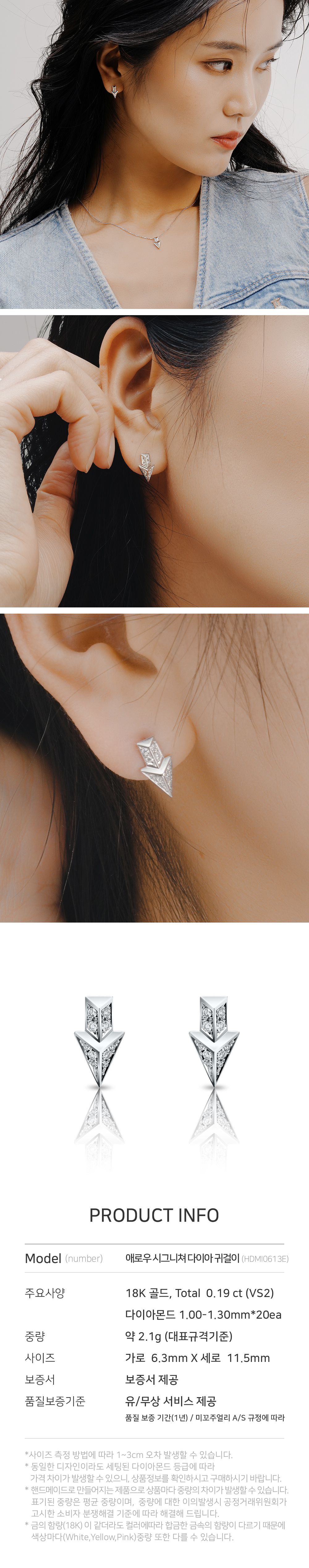 미꼬 애로우 시그니처 다이아몬드 이어링 화이트 골드