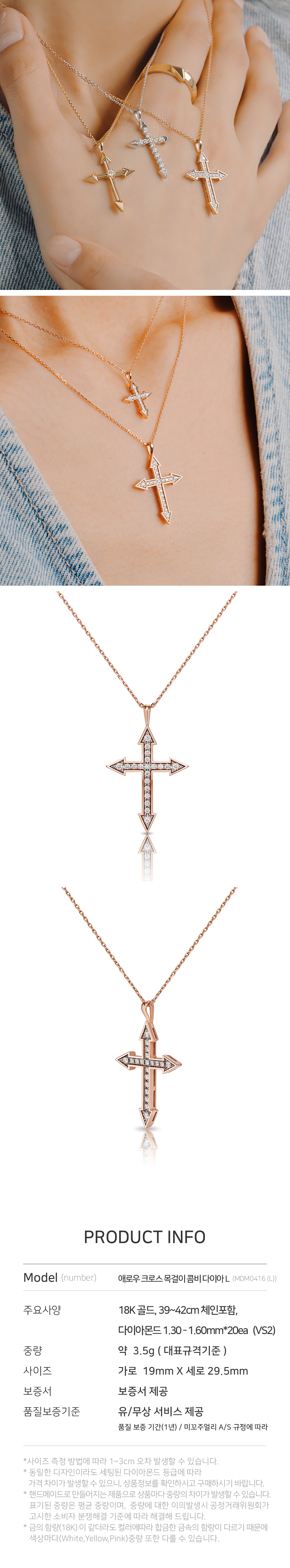 미꼬 애로우 크로스 콤비네이션 다이아몬드 L 네클리스 핑크 골드