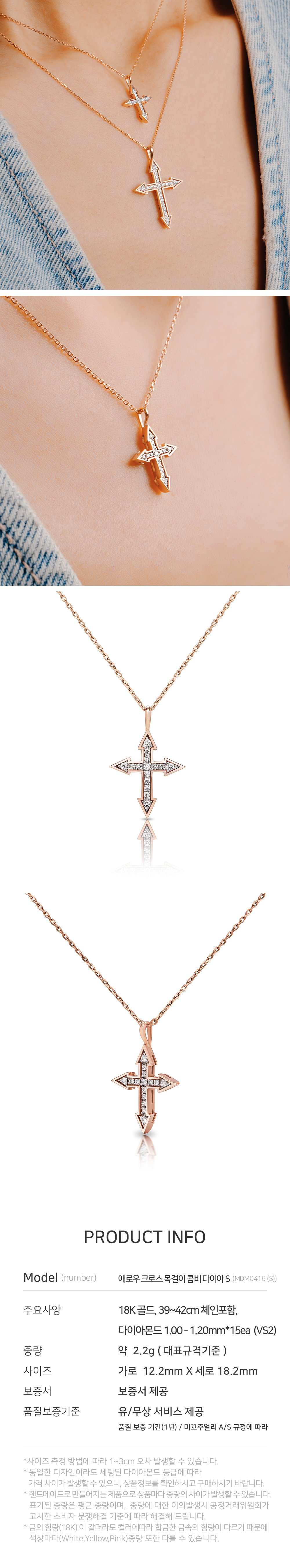 미꼬 애로우 크로스 콤비네이션 다이아몬드 S 네클리스 핑크 골드