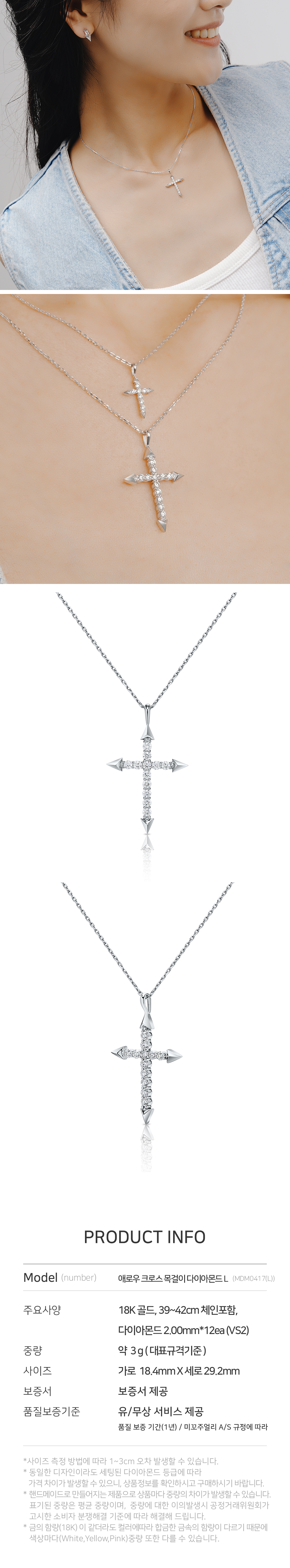 미꼬 애로우 크로스 다이아몬드 L 네클리스 화이트 골드