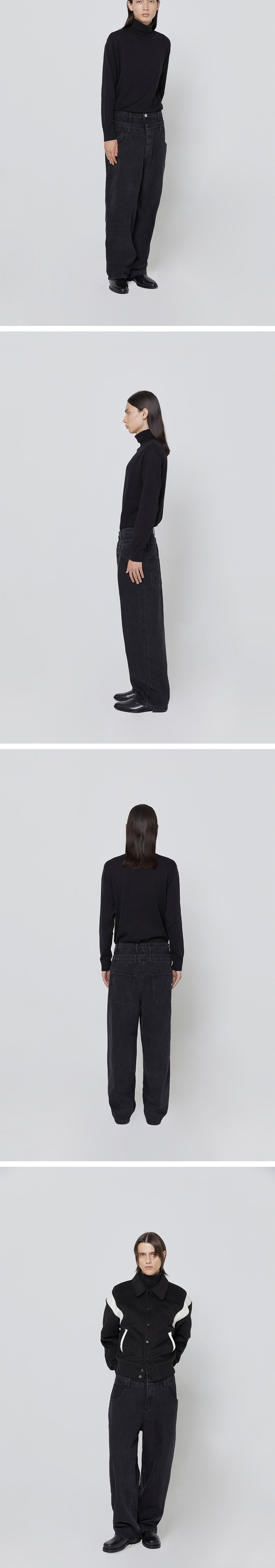 - 수차례 샘플과 핏 개발을 통해 준비한 뉴 스테디 데님 라인 - 두 개의 층으로 레이어링 된 허리 부분 디테일이 돋보이는 팬츠 - 의도적으로 과하게 맥시한 실루엣 연출의 데님 팬츠 - 상의를 바지 안으로 넣어 착용할 시 유니크한 코디 연출 가능 - 벨트 착용의 위치를 달리할 수 있어 코디 연출에 재미를 더할 수 있음 - 어떠한 코디든 잘 어울릴 수 있는 컬러감과 핏을 고려하여 디벨롭 진행 - 사계절 내내 활용 가능한 두께감 - 의도적인 오버사이즈 스펙 디테일