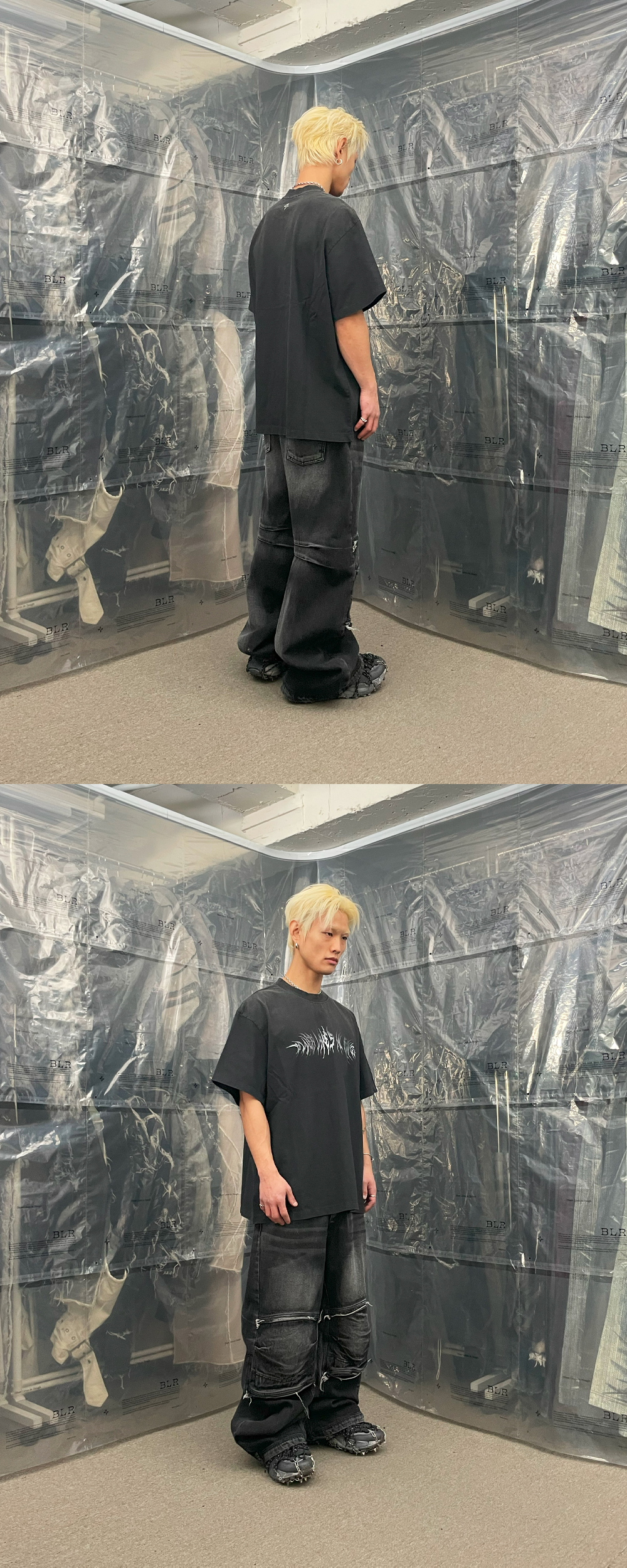 비엘알 블러 리브스 인 러프 워시드 티셔츠 블랙