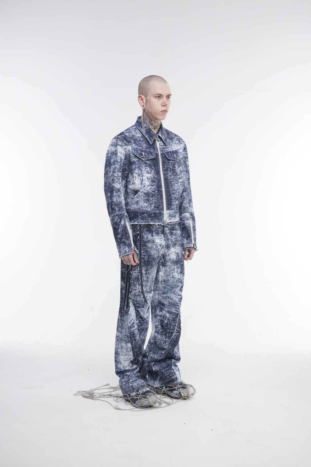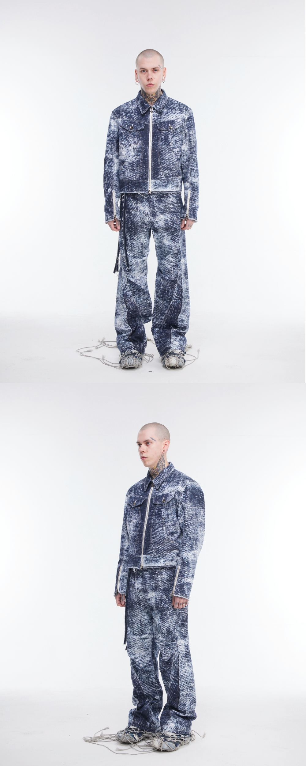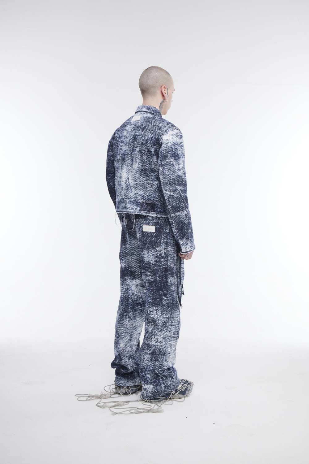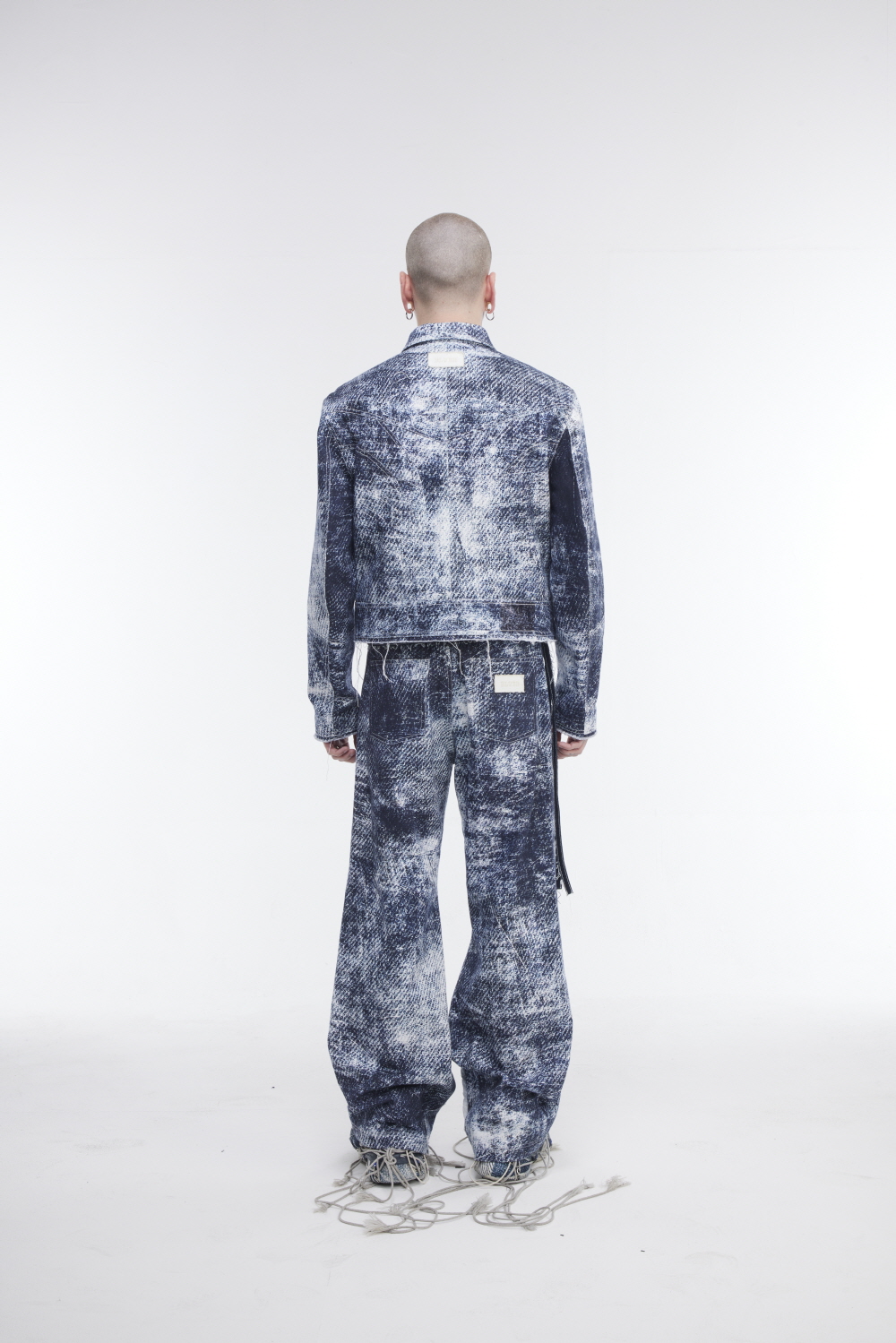 비엘알 커브드 프린티드 데님 팬츠 네이비