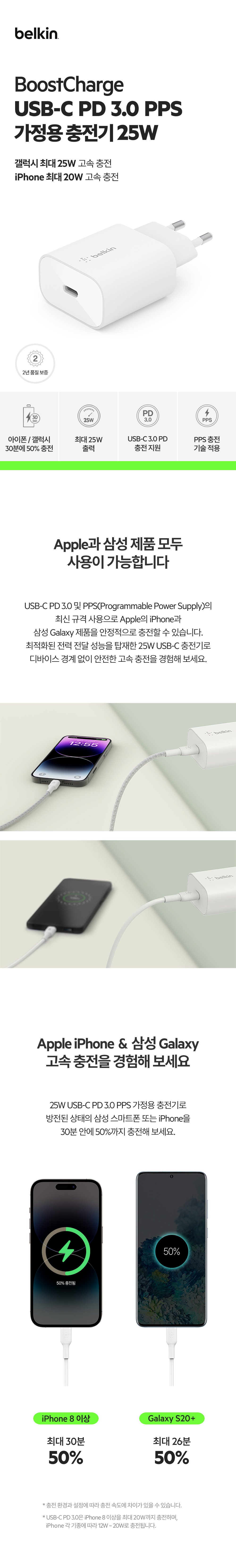 벨킨 25W PD 3.0 PPS C타입 초고속 충전기 WCA004