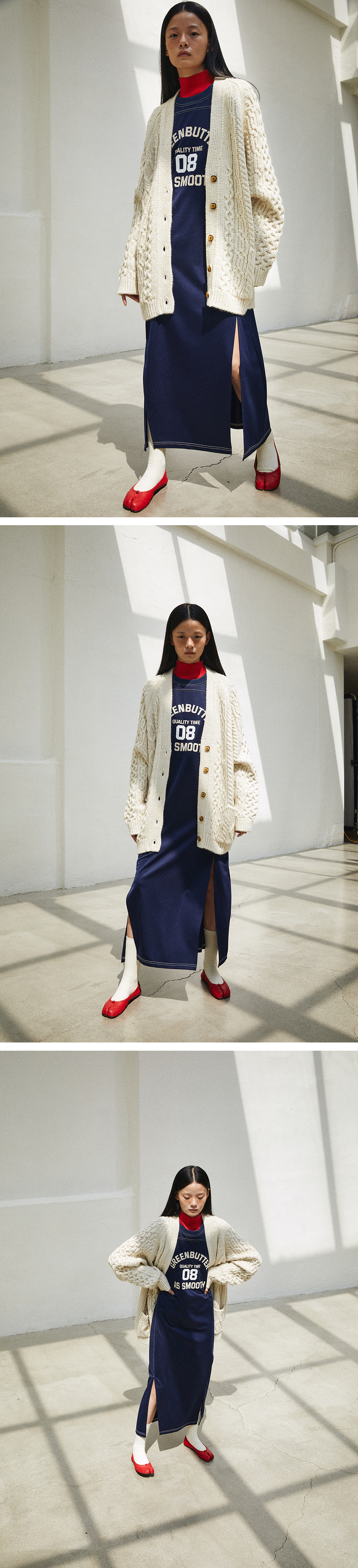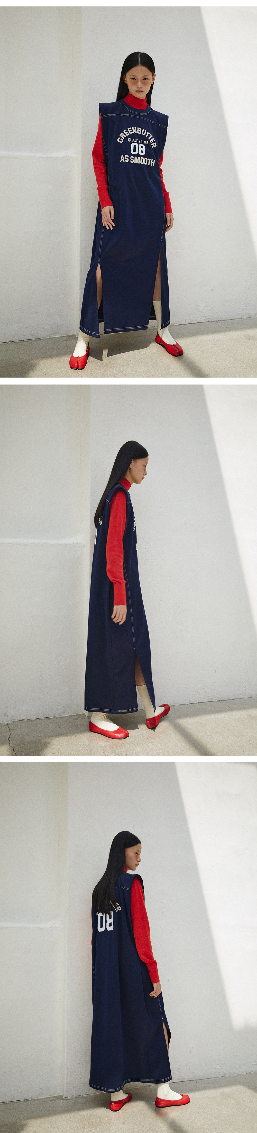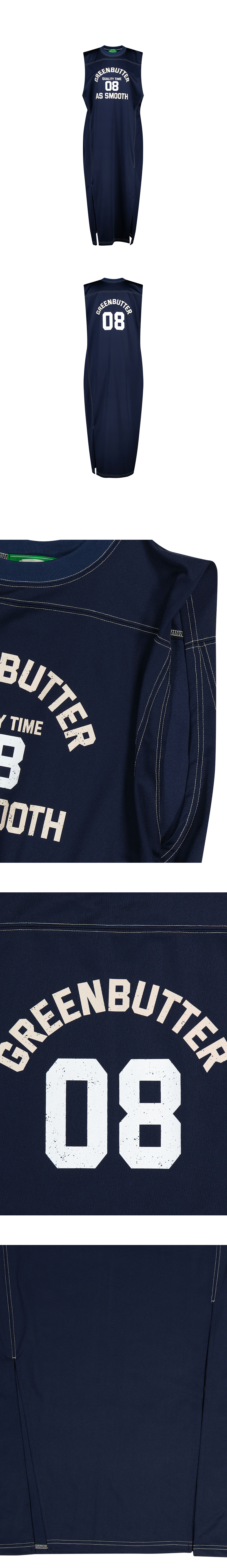 그린버터 우먼 컷팅 로고 져지 드레스 네이비