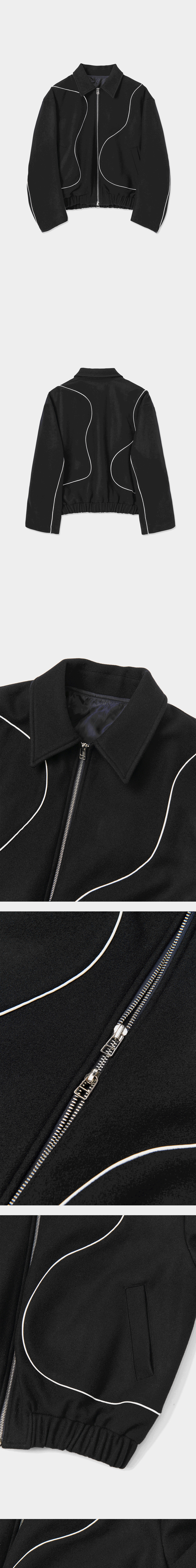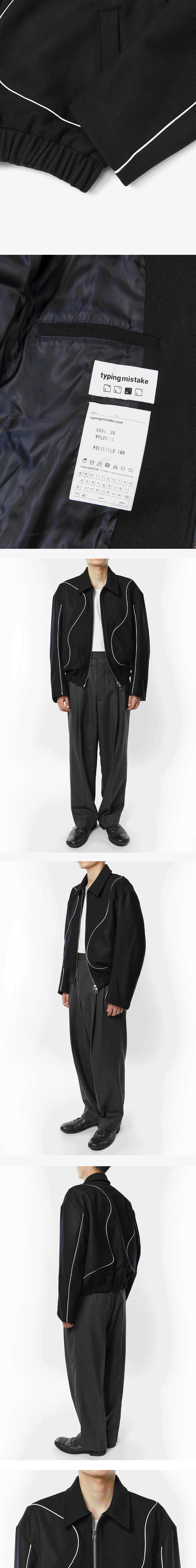타이핑미스테이크 베스트셀러인 볼루미너스 파이핑 블루종의 버전업 리뉴얼 모델입니다. 기존에 비해 파이핑 라인이 보다 입체적 표현으로 전개된 것이 포인트입니다. 몸와 소매 라인의 유려한 절개 라인에 맞춰 배치된 비건 레더 파이핑을 적용해 감도 높은 무드를 더했습니다. 국내 울 생산 전문 기업과 직접 개발에도 함께 참여하여 완성된 소재로 보온성 및 울 함유량이 높은 press melton wool 소재를 사용하였습니다. 전모 가공을 통해 울 소재의 취약점이라고 할 수 있는 울 날림 현상을 최소화하였고 마찰에 견디는 강도를 강화하여 보풀도 쉽게 생기지 않습니다. 여유 있는 소매와 경쾌한 기장 그리고 밑단 엘라스틱 밴드로 넉넉한 볼륨감은 물론 드롭 숄더 디테일로 어깨 곡선 라인을 따라 자연스러운 착용감을 느낄 수 있습니다. - MODEL 178CM, 64KG, WEARING M SIZE