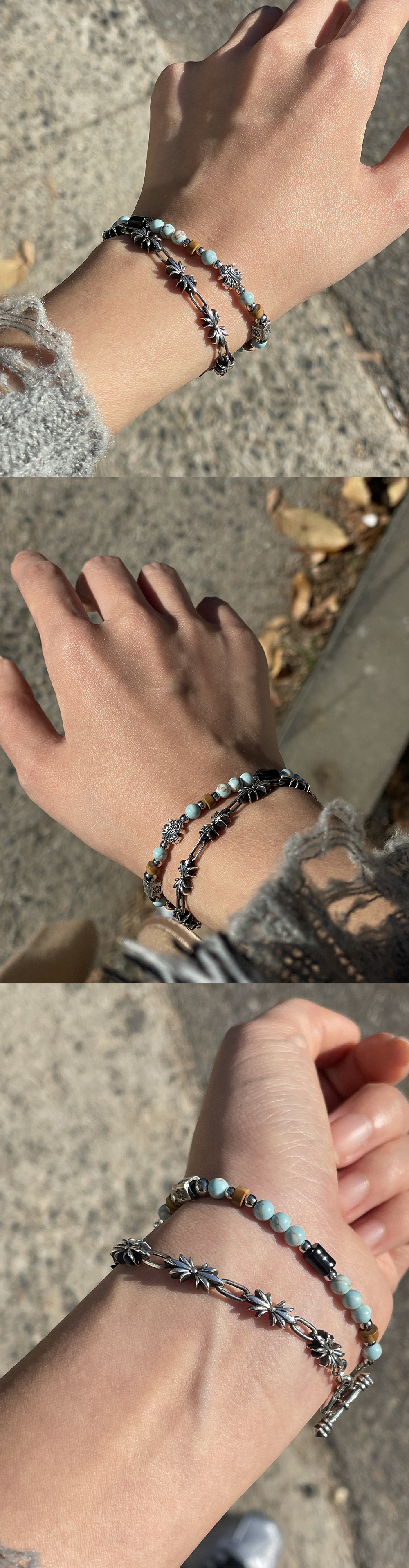 [beads line] 스쿠도 링크와 다양한 무늬의 핸드메이드 카렌실버로 이루어진 비즈 브레슬릿 오닉스 원석 비즈와 가든라인의 베이트리로 디자인된 스테디셀러 비즈 브레슬릿 *고산족 카렌실버는 수공예 핸드메이드 실버이기때문에, 같은 디자인이여도 모두 조금씩 다르며, 입고되는 디테일이 동일 할 수 없습니다. 그렇기 때문에, 비슷한 크기의 다른 디테일의 카렌실버 참으로 랜덤 되어 제작될 수 있습니다. *비즈 브레슬릿 특성상 A/S가 불가능 합니다. 스쿠도의 beads bracelet은 맞춤 handcraft 주얼리로, 3일 제작기간이 소요됩니다. (주말 / 공휴일 제외) 추가 제품 상담이 필요하시면, 문의 부탁드립니다.