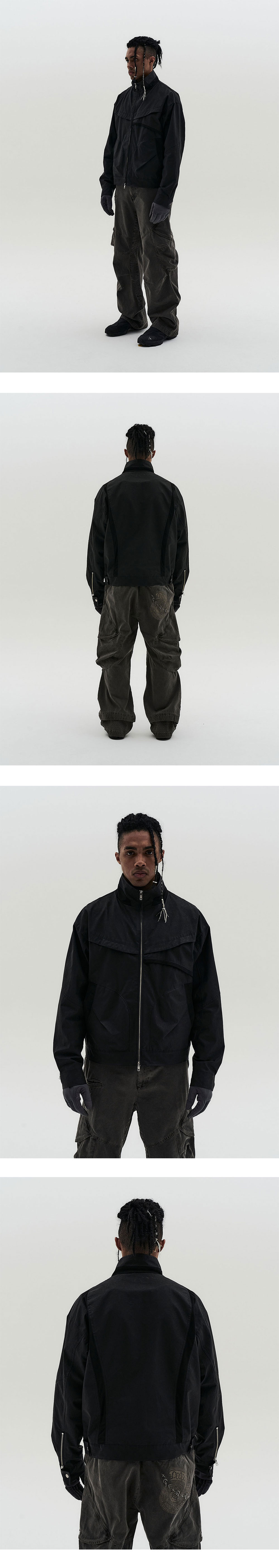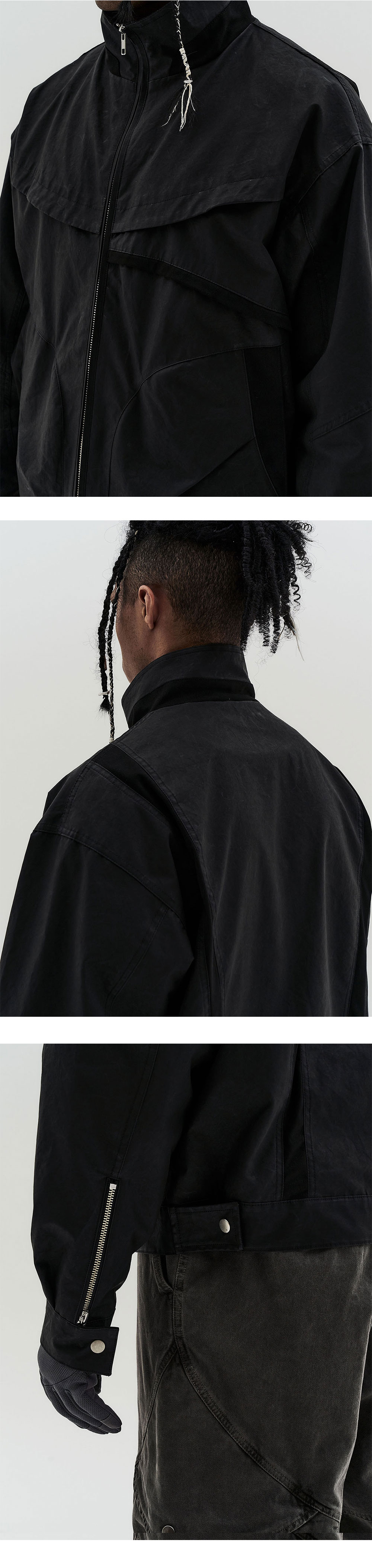 YKK 2WAY ZIPPER CARBON COATED FABRIC CUFFS SNAP/ZIPPER DESIGN CURVED BACK PANEL BACK HEM ADJUST ZIPPER POCKET ON INNER