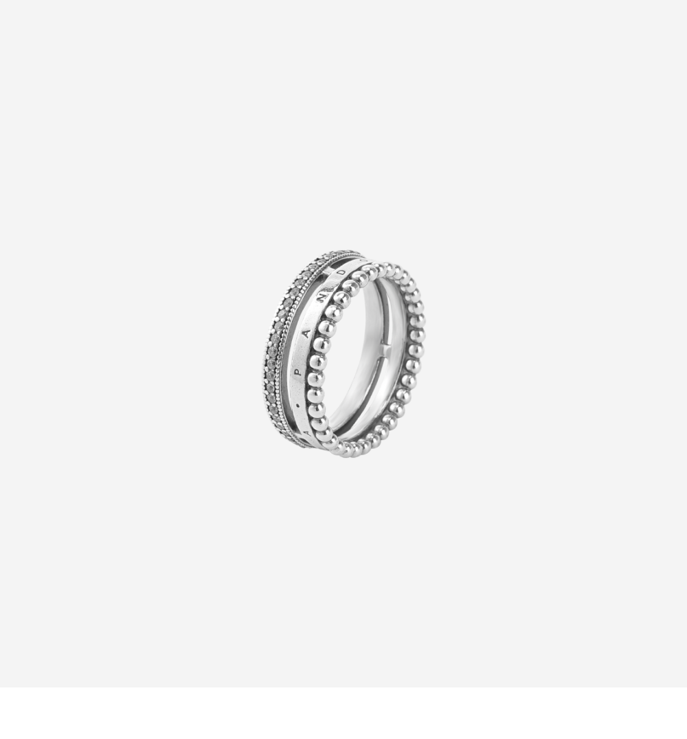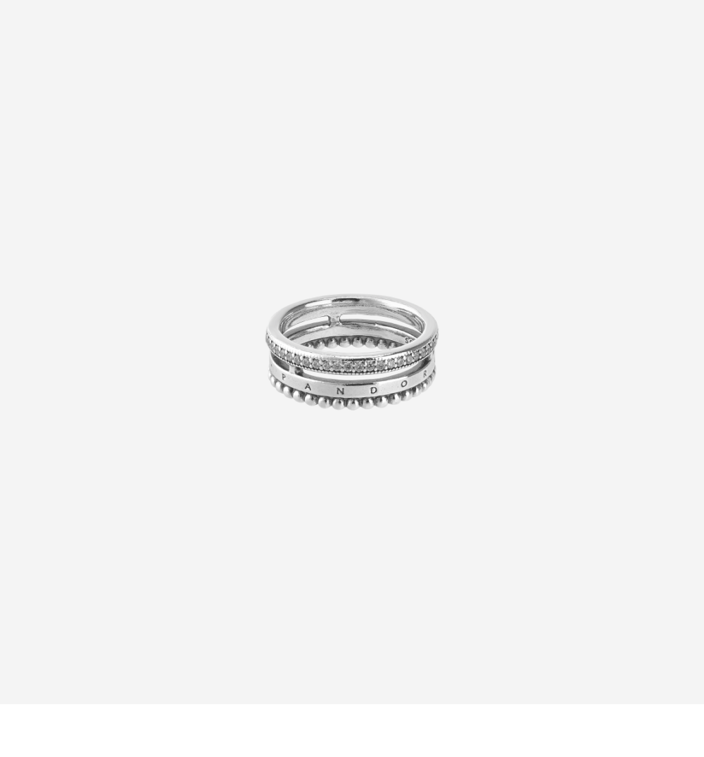 (W) 판도라 시그니처 로고 파베 & 비즈 링 스털링 실버 클리어