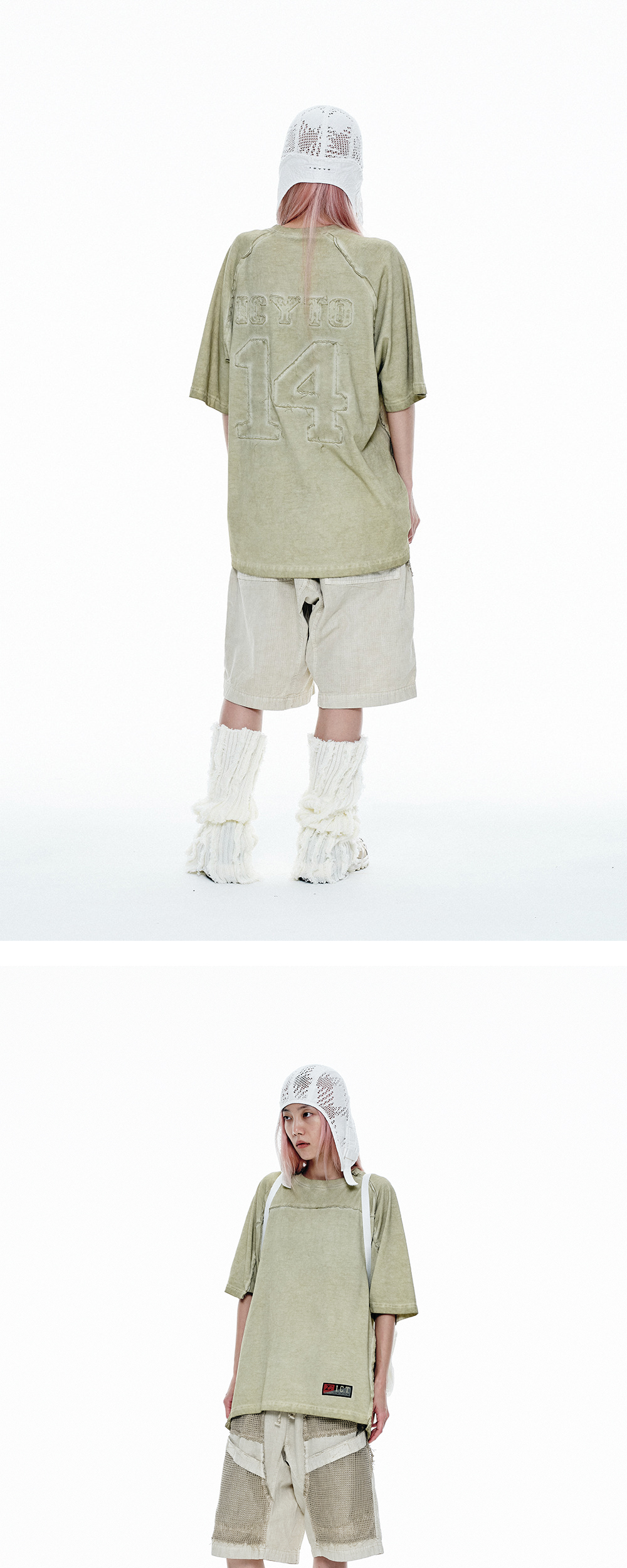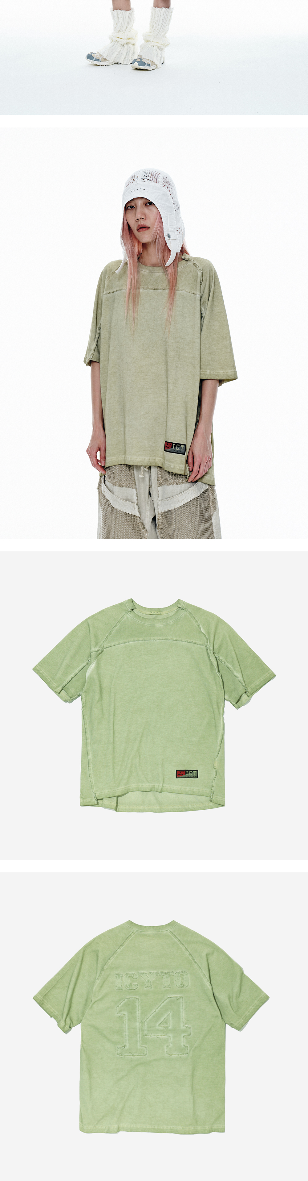 아이시토 로우 엣지컷 티셔츠 라이트 그린