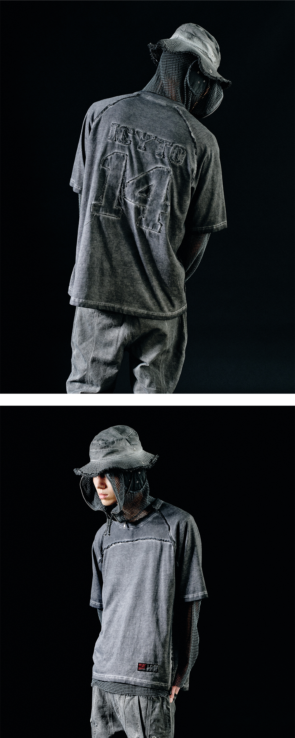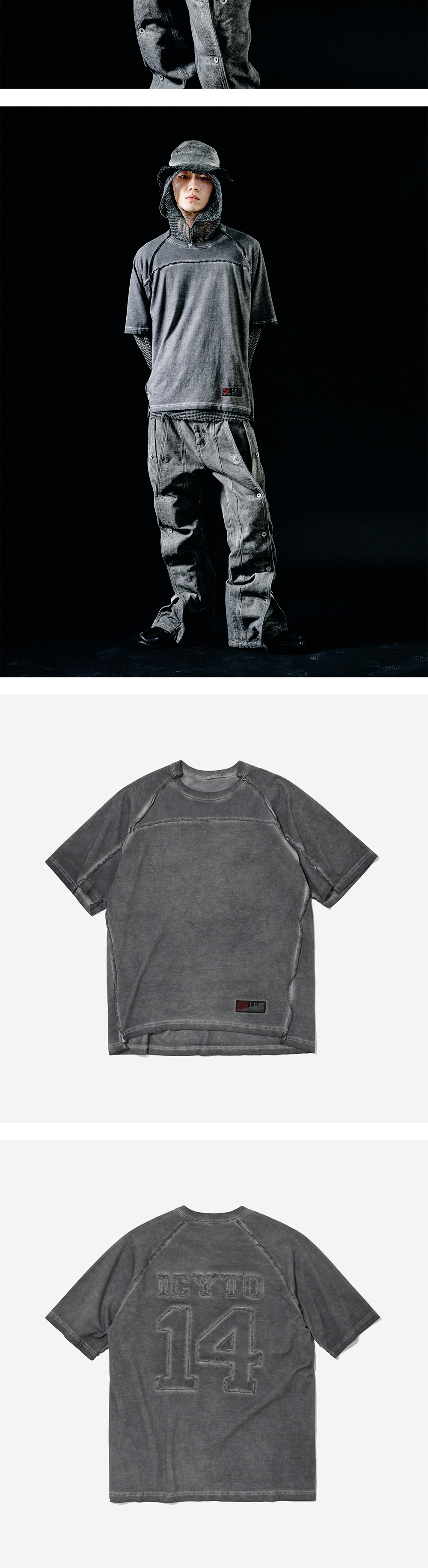 아이시토 로우 엣지컷 티셔츠 차콜