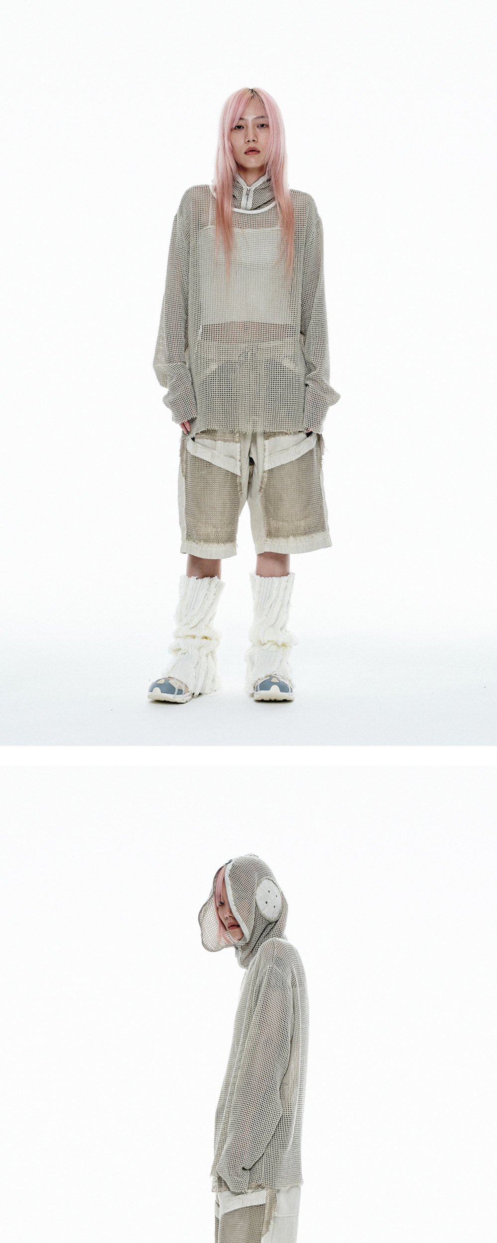밴딩 하프 팬츠 피그먼트 염색 로우컷 메쉬 포켓 가젯 크로치