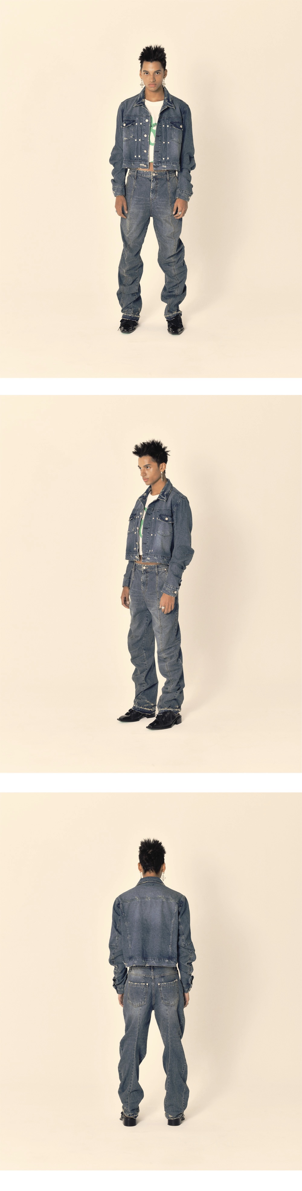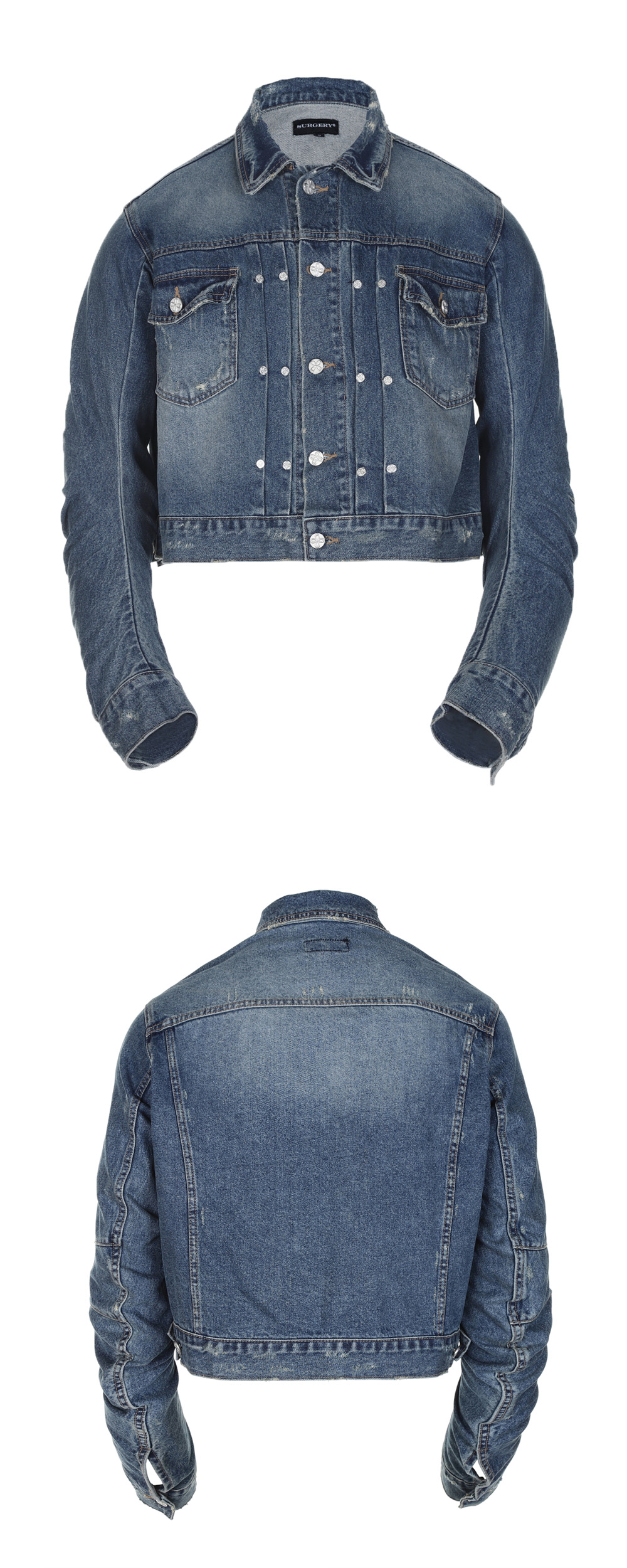 써저리 커브드 데님 트러커 자켓 블루 데님