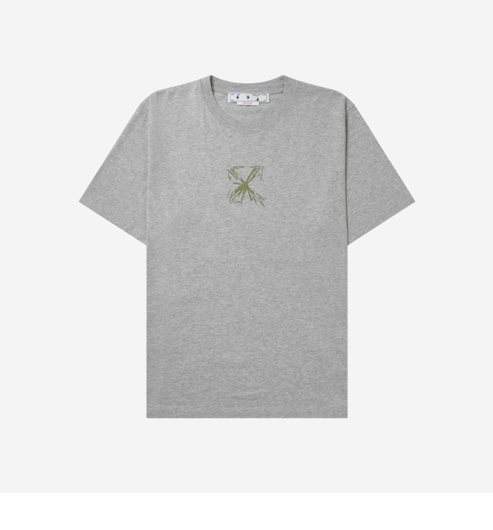 오프화이트 스플래쉬 애로우 슬림 숏슬리브 티셔츠 멜란지 그레이 베이지