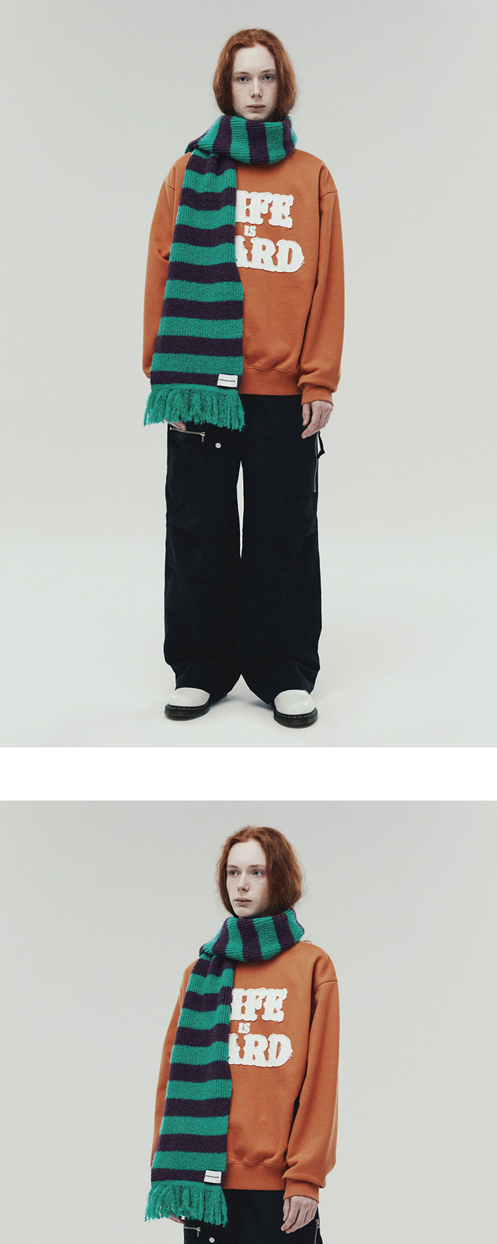 더바이닐하우스 모헤어 스트라이프 스카프 그린