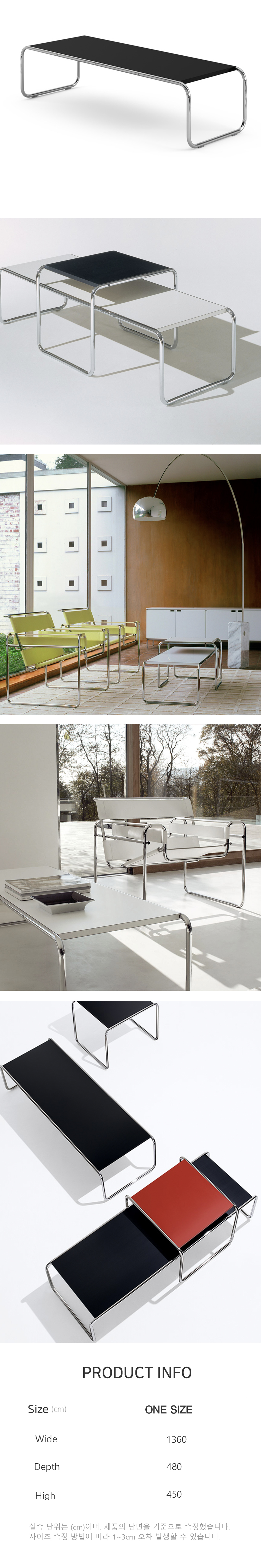 Laccio Table은 Marcel Breuer가 디자인한 제품으로, 그는 바우하우스 스타일을 대표하는 디자이너 중 하나입니다. 이 테이블은 높고 작은 테이블과 낮고 넓은 테이블을 하나로 구성하는 독특한 디자인을 가지고 있으며, 크롬 도금된 프레임은 일체형으로 연결되는 형태를 가지고 있습니다. 이는 최소한의 구조로 실용적이면서도 모던한 공간을 조성하는 데 기여합니다.