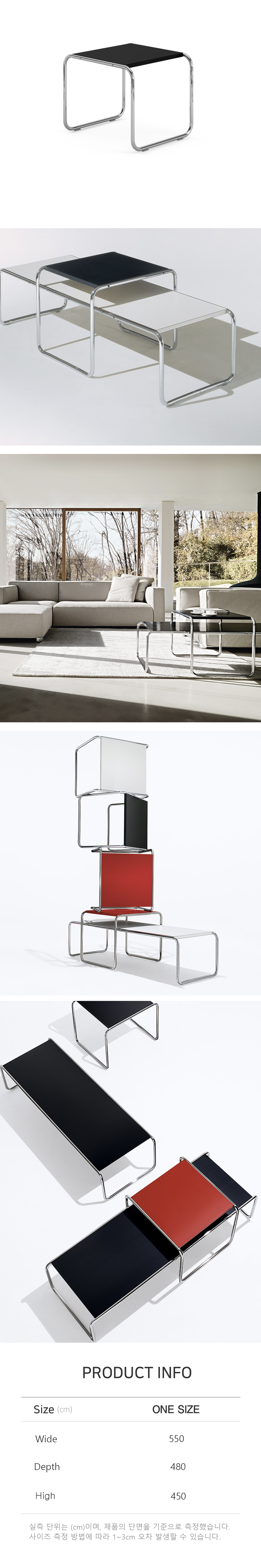 Laccio Side Table은 Marcel Breuer가 디자인한 제품으로, 그는 바우하우스 스타일을 대표하는 디자이너 중 하나입니다. 이 테이블은 높고 작은 테이블과 낮고 넓은 테이블을 하나로 구성하는 독특한 디자인을 가지고 있으며, 크롬 도금된 프레임은 일체형으로 연결되는 형태를 가지고 있습니다. 이는 최소한의 구조로 실용적이면서도 모던한 공간을 조성하는 데 기여합니다.