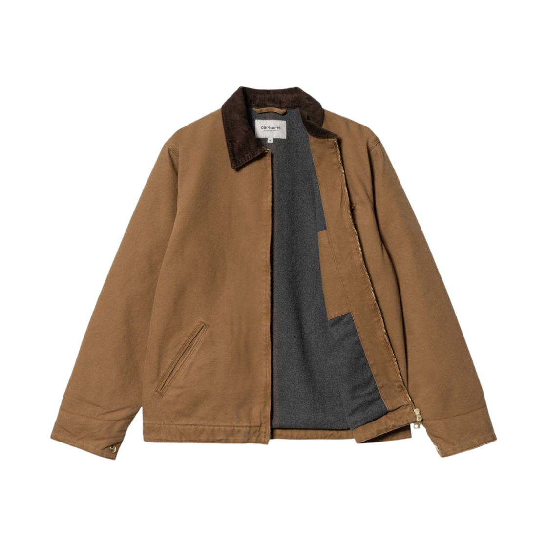 칼하트 WIP 라인드 디어본 캔버스 디트로이트 자켓 해밀턴 브라운 헤비 스톤 워시 - 윈터