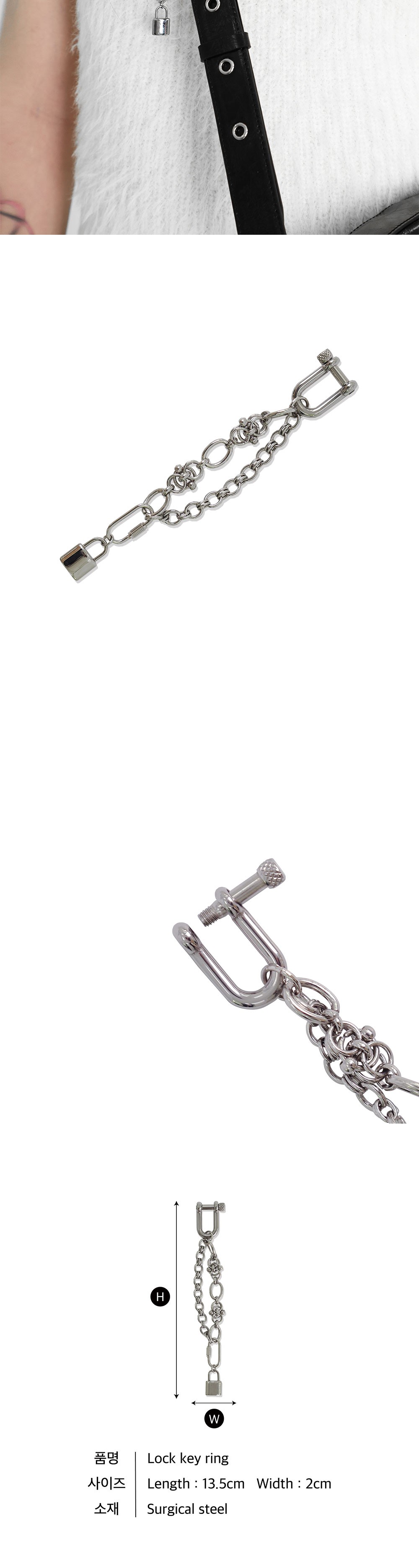 Chain: surgical steel Buckle: surgical steel Pendant: surgical steel 키링 고리의 나사를 돌려 탈부착하는 형식의 키링 다양한 곳에 부착이 가능하여 포인트 주기 좋은 아이템