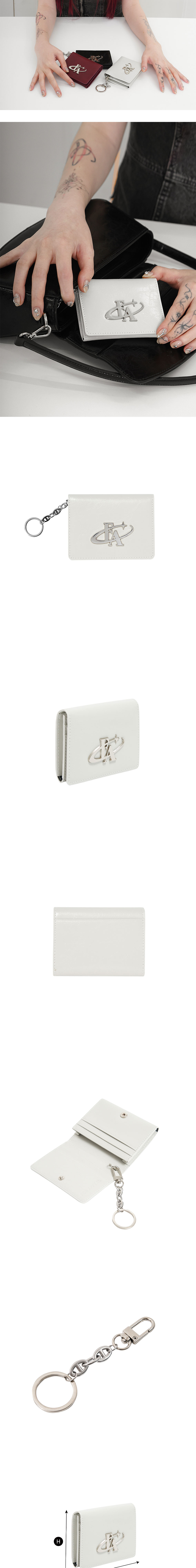 COW LEATHER SURGICAL CHAIN 카드포켓6개 , 중앙 수납칸1개 탈부착이 가능한 키링 제공 한 손에 잡히는 컴팩트한 사이즈 ‘blod logo’ 팬던트 장식이 특징인 카드지갑