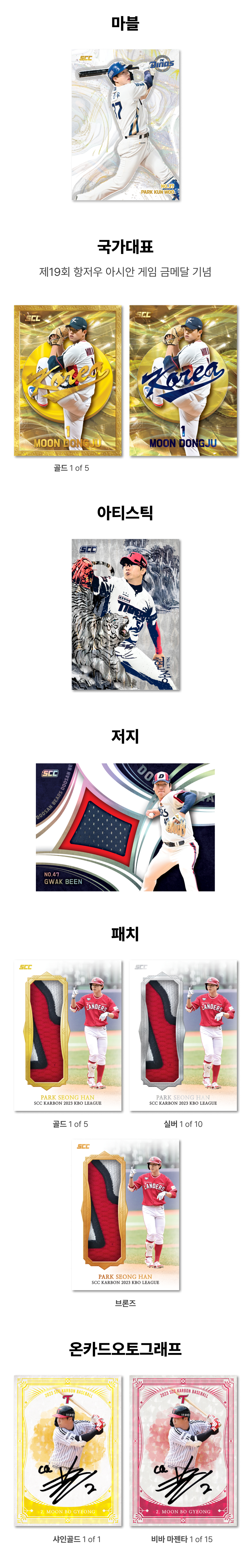 SCC 2023 한국 프로야구 카본 트레이딩 카드 박스 세트 - 10팩(1 박스)