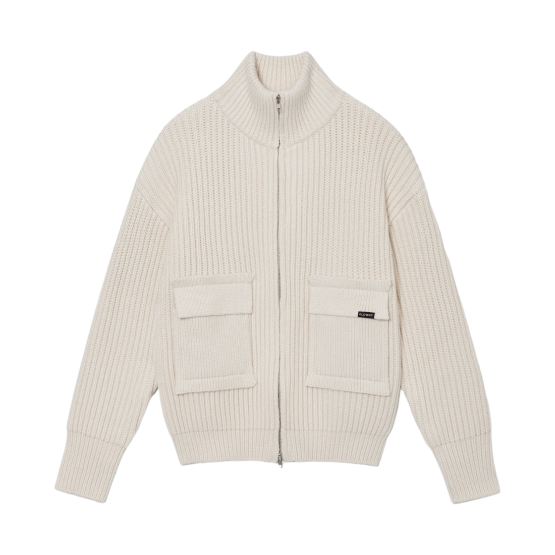 (W) Glowny Taylor Pocket Viscose Knit Zip Up Ivory