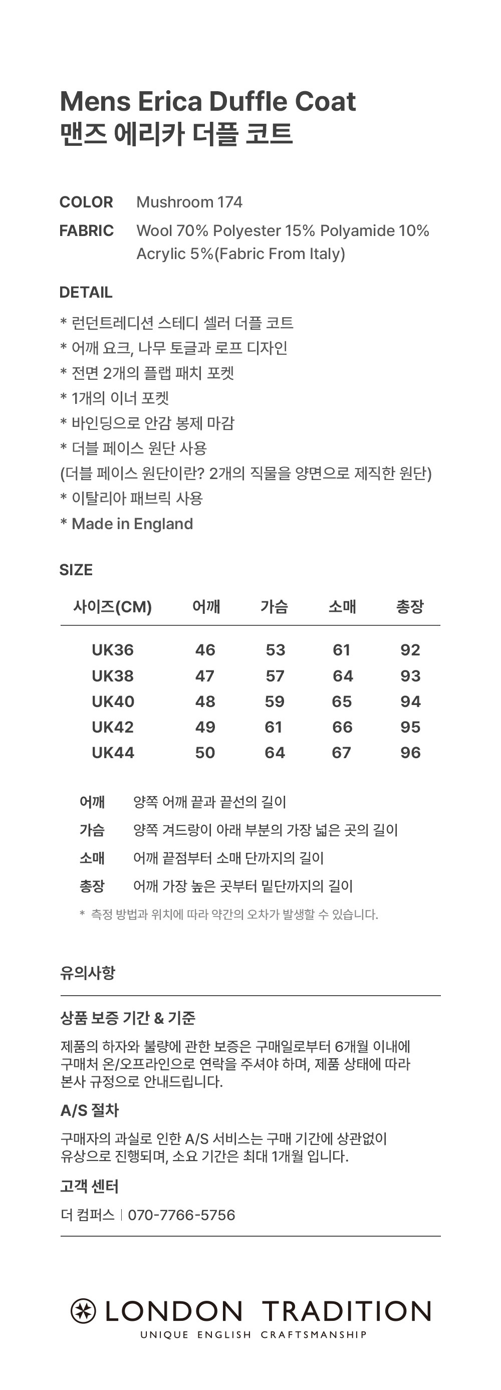 | 어깨 | 가슴단면 | 소매 | 총장 |