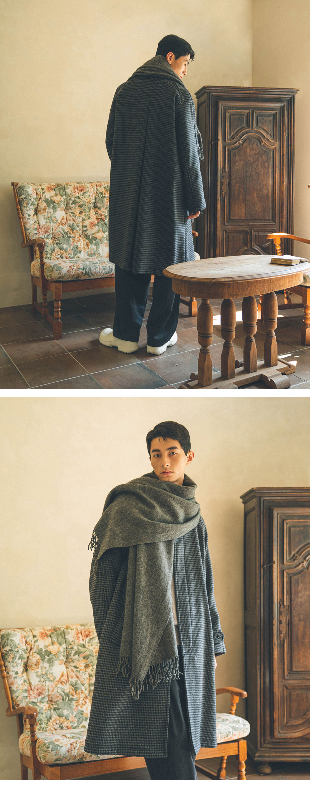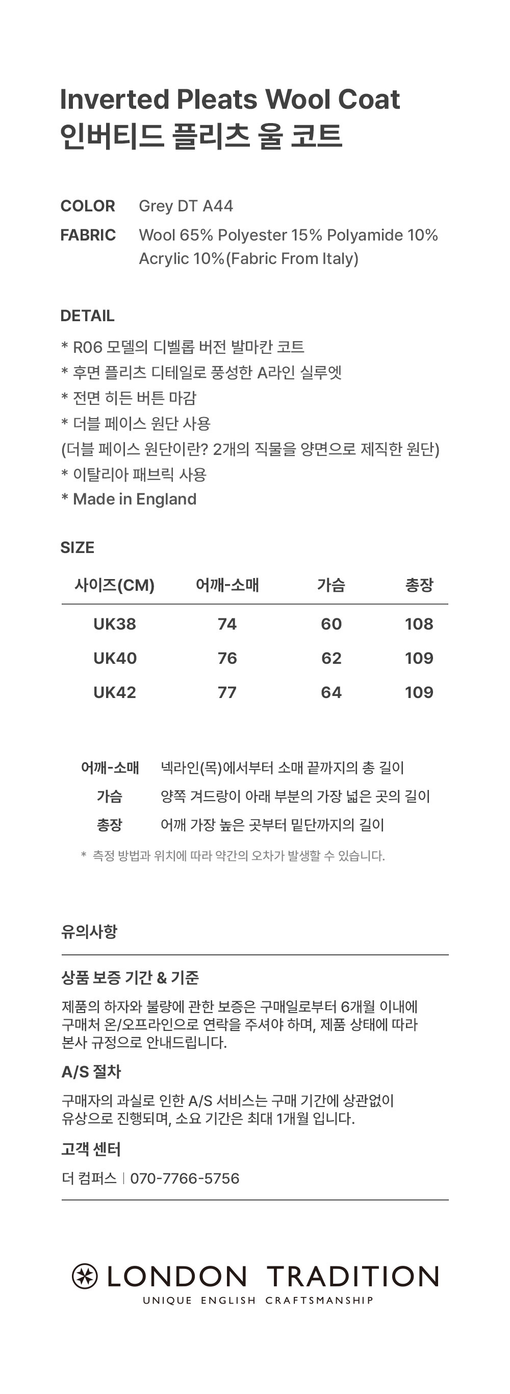 런던 트레디션 인버티드 플리츠 울 코트 그레이 DT A44