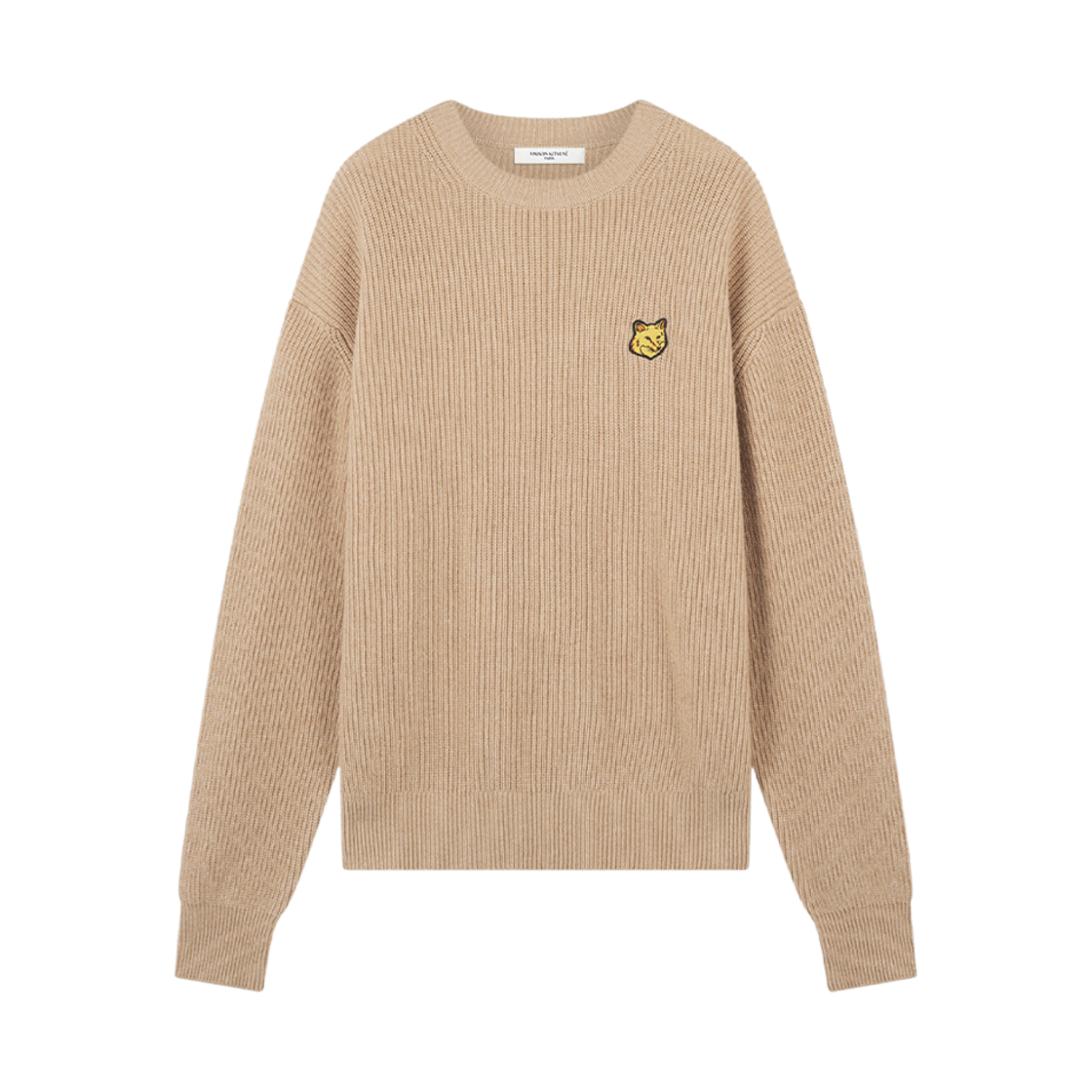 Maison Kitsune Bold Fox Head Patch Comfort Ribbed Jumper Beige Melange
