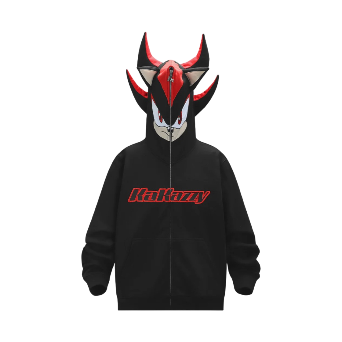 Kakazzy Full Zip Hoodie Sonic Shadow the Hedgehog Black