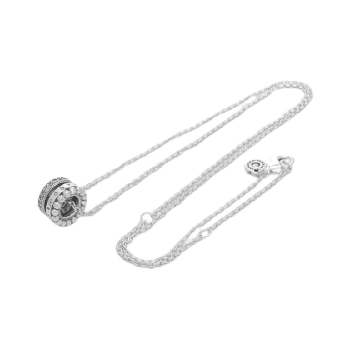 (W) Pandora Signature Logo Pave & Beads Necklace Silver