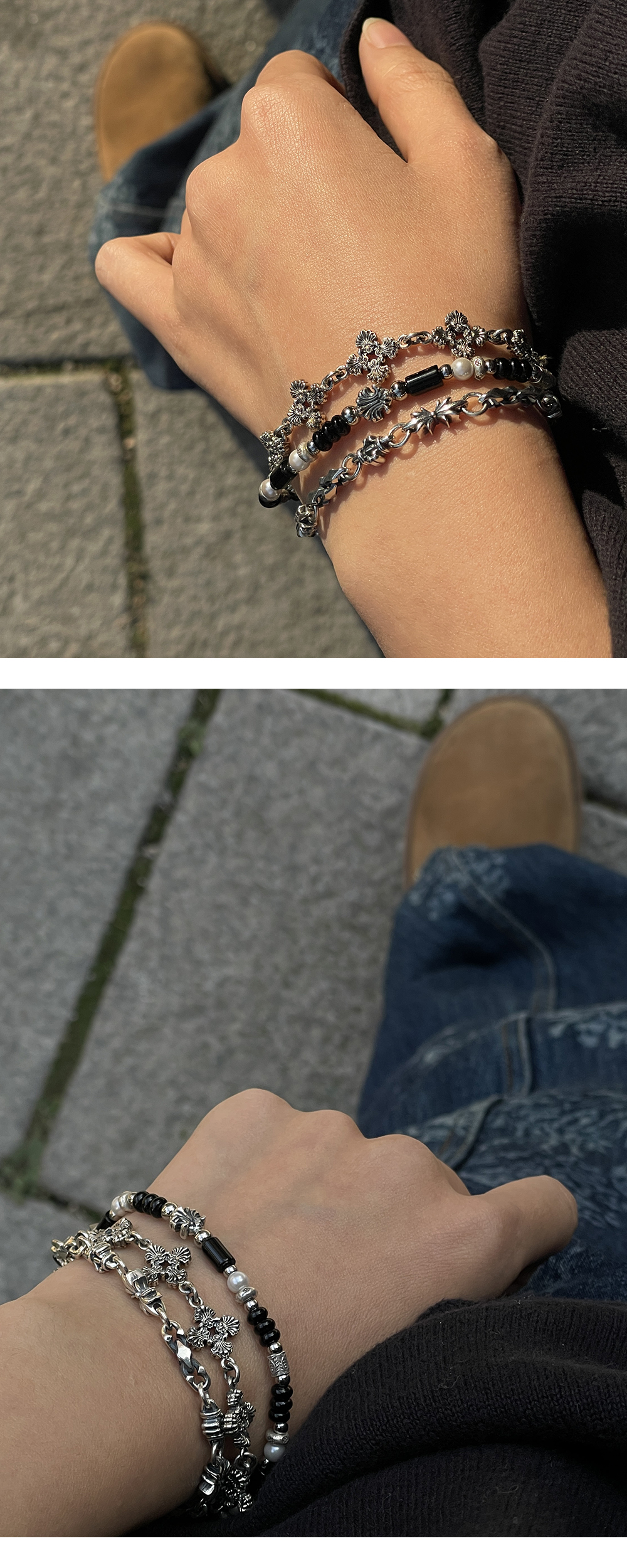 [pearl line] 스쿠도 링크와 다양한 무늬의 핸드메이드 카렌실버로 이루어진 비즈 브레슬릿 오닉스 원석 비즈와 미스트그레이 진주 , 쉘 링크로 디자인된 윈터 컬렉션 비즈 브레슬릿 *고산족 카렌실버는 수공예 핸드메이드 실버이기때문에, 같은 디자인이여도 모두 조금씩 다르며, 입고되는 디테일이 동일 할 수 없습니다. 그렇기 때문에, 비슷한 크기의 다른 디테일의 카렌실버 참으로 랜덤 되어 제작될 수 있습니다. *비즈 브레슬릿 특성상 A/S가 불가능 합니다. 스쿠도의 beads bracelet은 맞춤 handcraft 주얼리로, 3일 제작기간이 소요됩니다. (주말 / 공휴일 제외) 추가 제품 상담이 필요하시면, 문의 부탁드립니다.