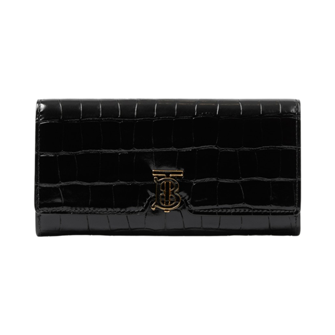 버버리 엠보스드 레더 TB 컨티넨탈 지갑 블랙
