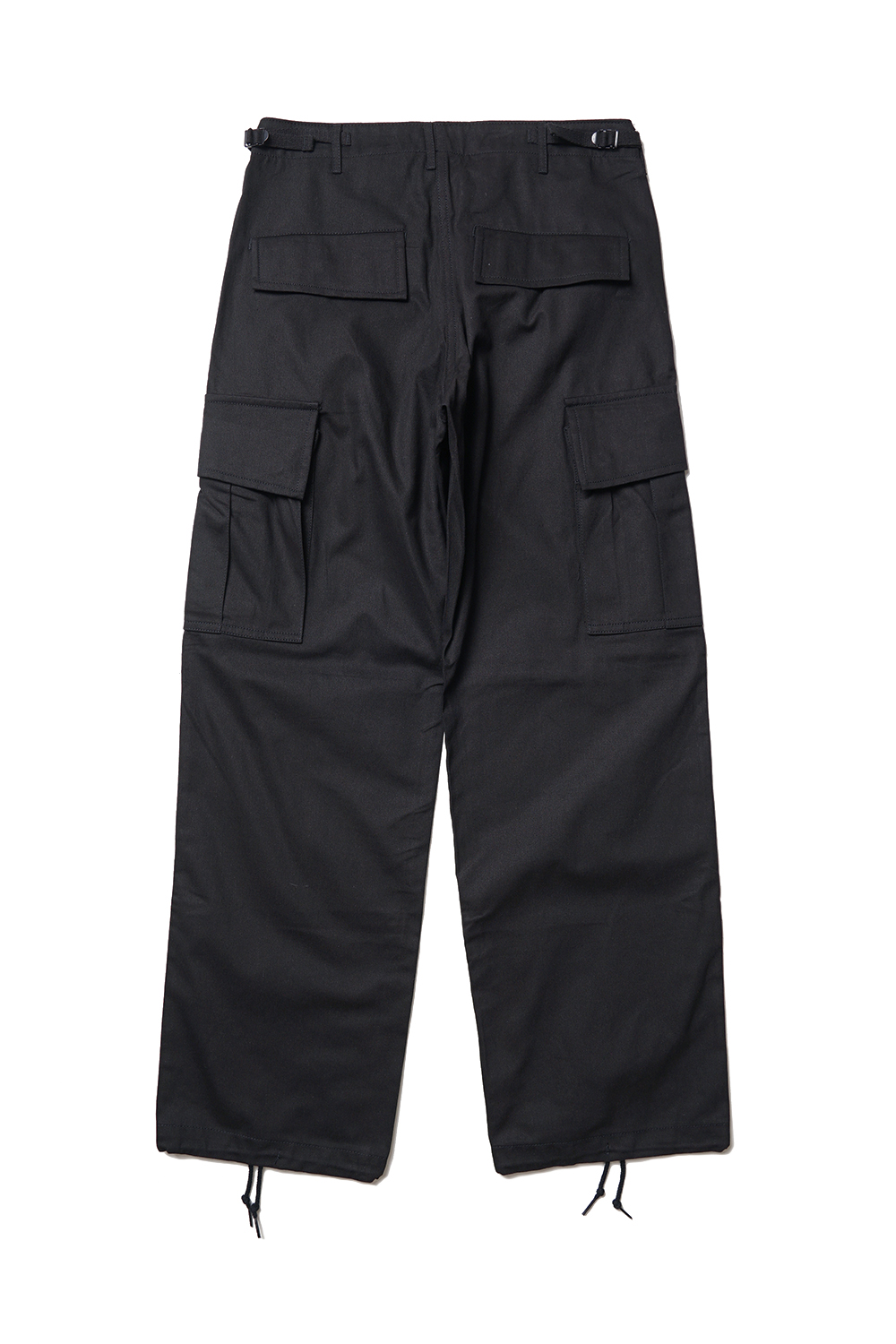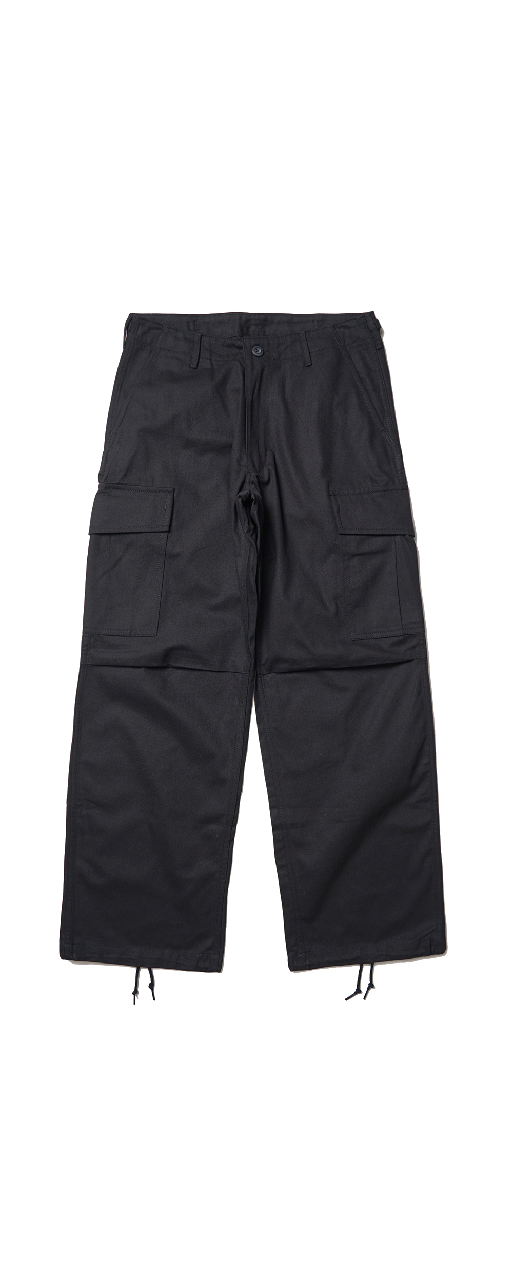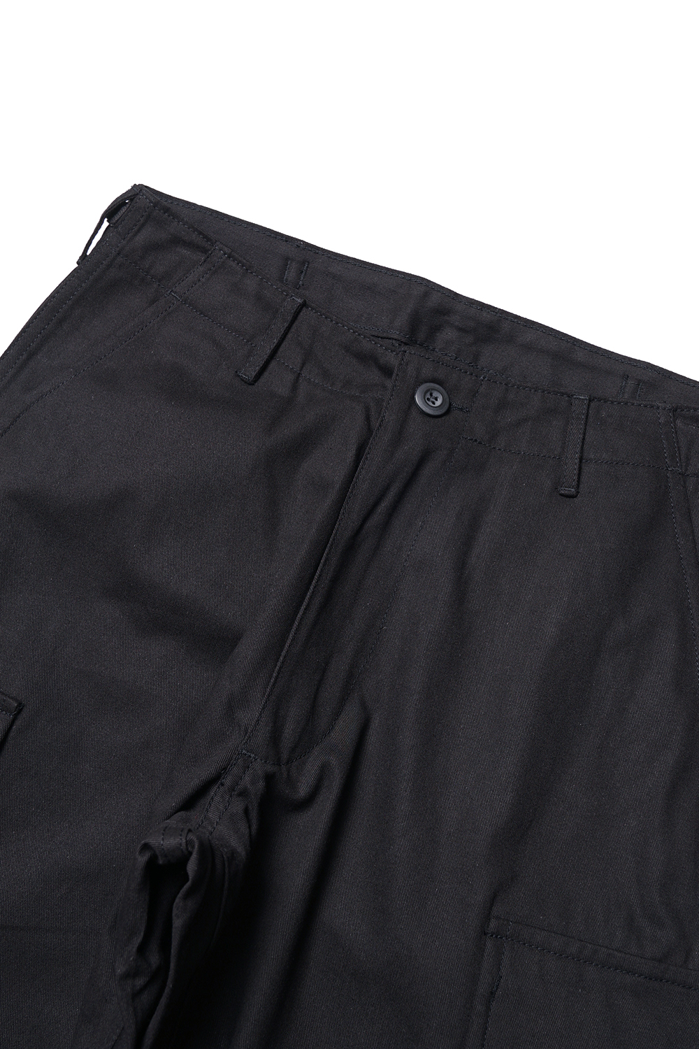 Houston Japan 10055 Twill BDU Pants - Black 인도製 트윌 원단을 사용한 BDU 팬츠입니다. 프론트는 지퍼 플라이 사양이며, 허리 양측의 어드저스트로 사이즈 조절이 가능합니다. 허벅지 양측의 카고 포켓은 버튼 타입으로 개폐가 가능하며 무릎 부분에는 턱이 잡혀져 있어서, 원단이 팽팽해지는 것을 막아줍니다. 밑단의 드로우 코드로 사이즈 조절이 가능하며, 힙 부분에는 플랩 포켓이 위치해 있습니다.