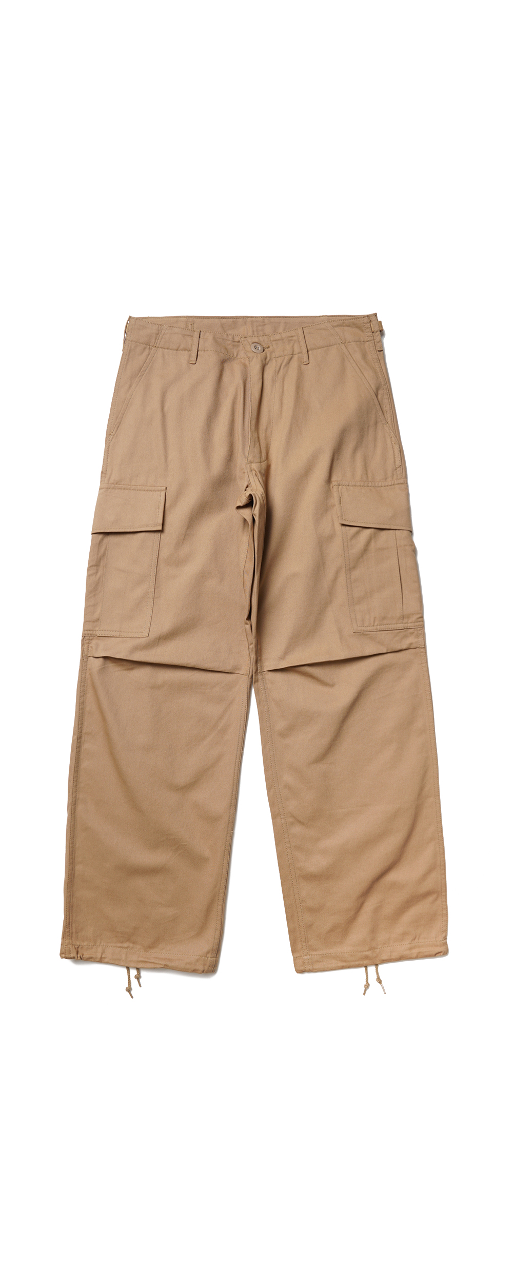 Houston Japan 10055 Twill BDU Pants - Khaki 인도製 트윌 원단을 사용한 BDU 팬츠입니다. 프론트는 지퍼 플라이 사양이며, 허리 양측의 어드저스트로 사이즈 조절이 가능합니다. 허벅지 양측의 카고 포켓은 버튼 타입으로 개폐가 가능하며 무릎 부분에는 턱이 잡혀져 있어서, 원단이 팽팽해지는 것을 막아줍니다. 밑단의 드로우 코드로 사이즈 조절이 가능하며, 힙 부분에는 플랩 포켓이 위치해 있습니다.
