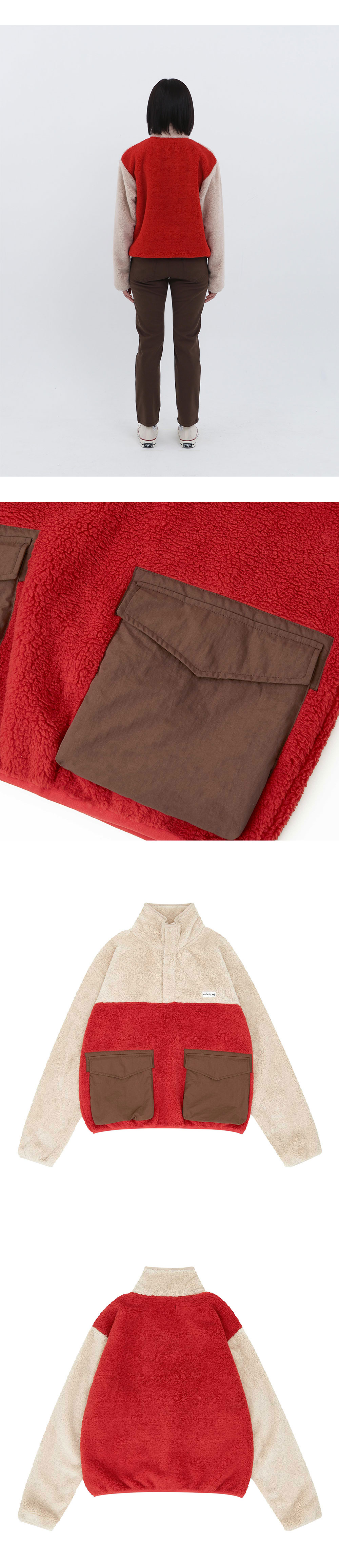 Safarispot Pocket Half Snap Pullover Beige Red Brown