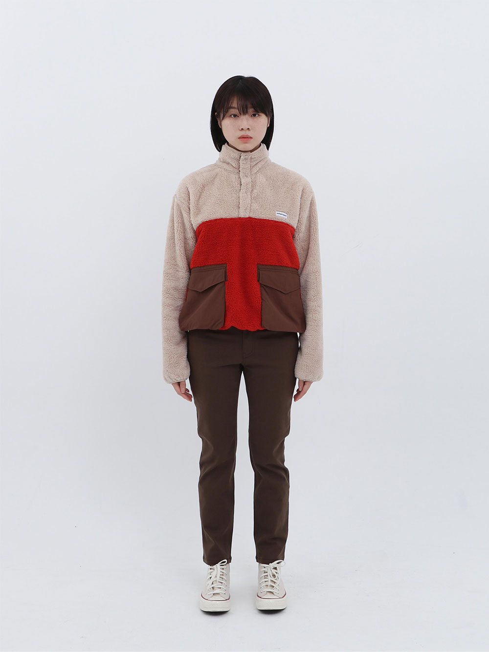 사파리스팟 포켓 하프 스냅 풀오버 베이지 레드 브라운