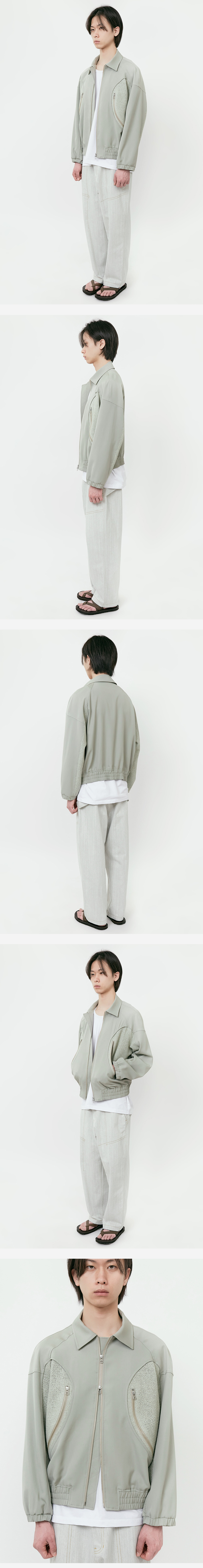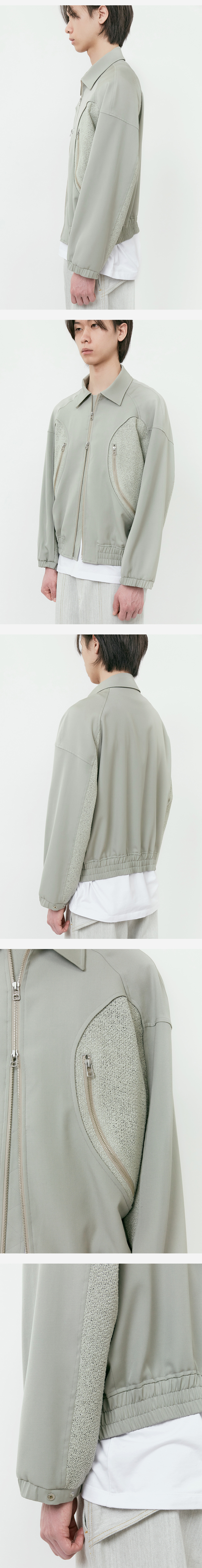 * 앞판 곡선 절개라인을 기준으로 트위드와 울을 믹스한 위트있는 디자인 * 메인 겉감으로 부드러운 4계절 트윌 울 소재 적용 * 안감으로 차가운 성질의 섬유인 레이온 소재 라이닝을 사용하여 여름철 보다 쾌적한 착용감 * 레글런 숄더로 어깨 곡선라인을 따라 자연스러운 착용감 * 여유있는 소매통 밸런스, 경쾌한 기장, 소매 밑단에 엘라스틱 밴드로 풍성한 볼륨감 * 소매 밑단에 스냅버튼을 통해 볼륨 조절 가능 * 넉넉한 주머니 사이즈 * 복원력이 좋은 울 베이스의 소재를 사용하여 구김을 최소화시킴 * YKK 지퍼 사용