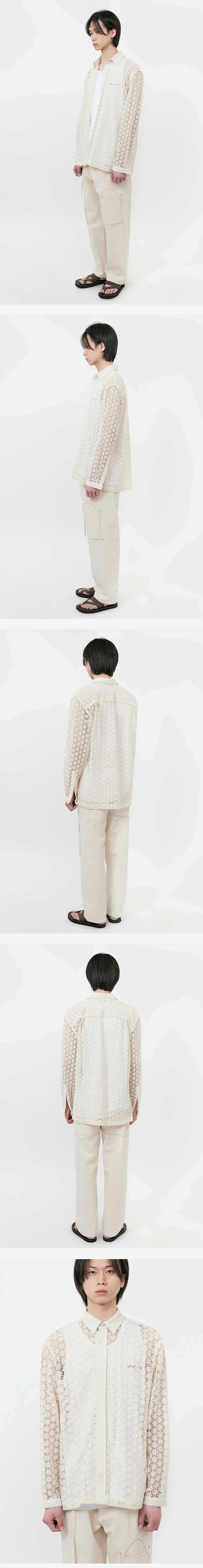 타이핑 미스테이크 플라워 패턴 크로쉐 셔츠 아이보리