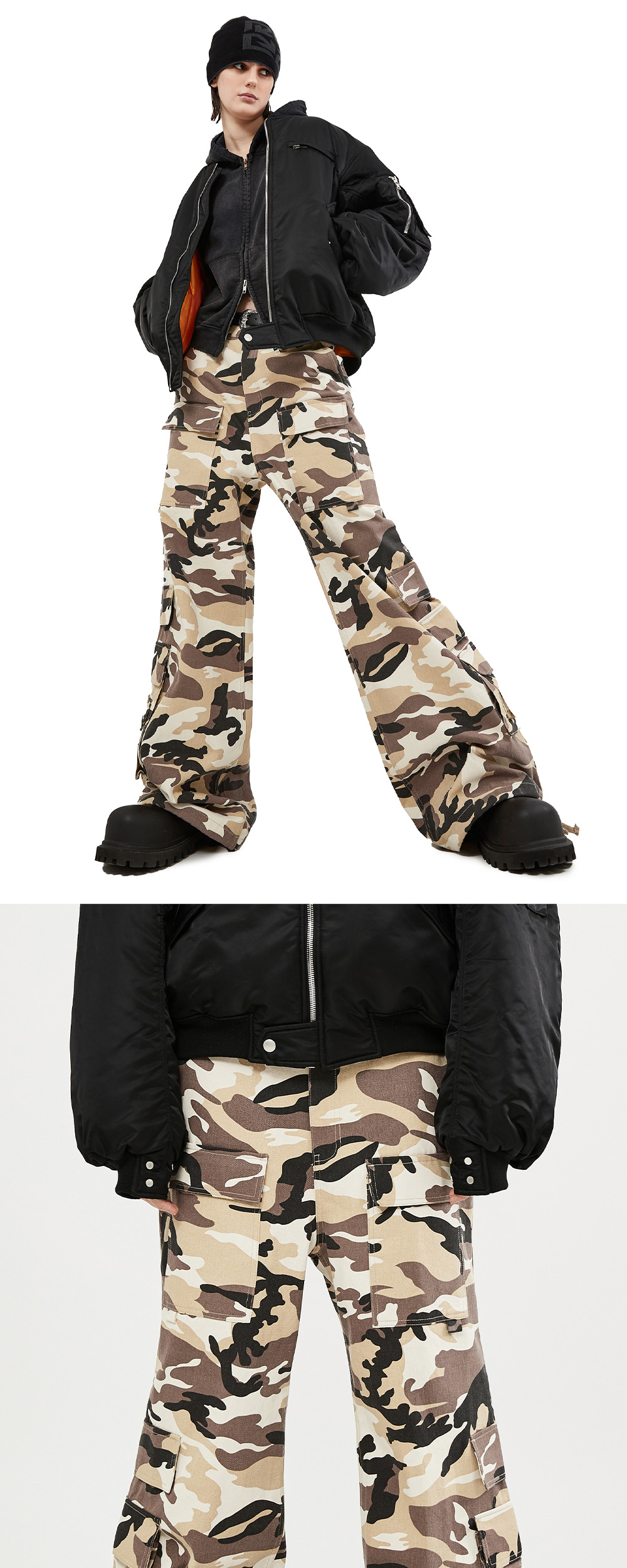 선데이오프클럽 카모플라쥬 카고 와이드 트라우저 데저트 카모