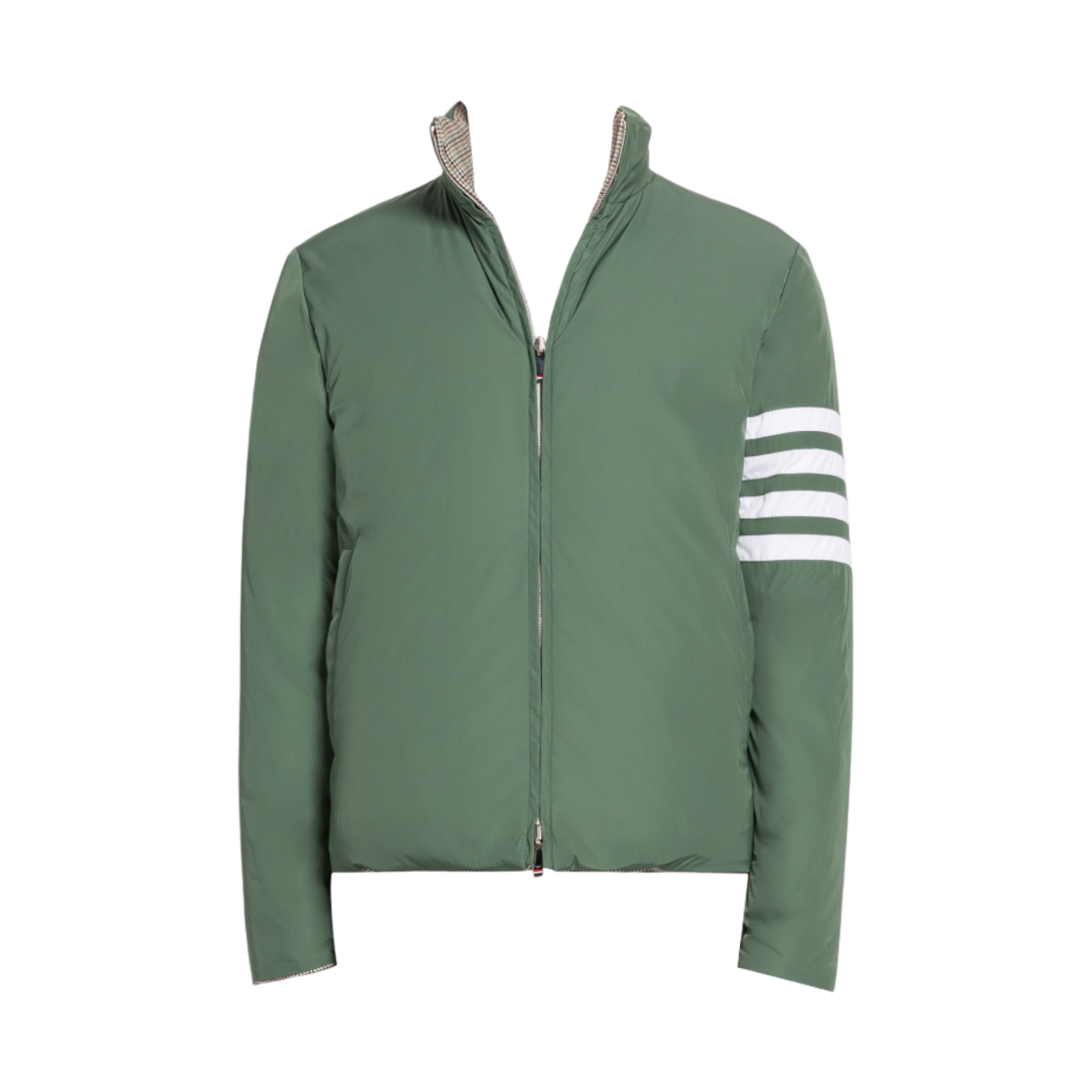 Thom Browne Wool Houndstooth 4-Bar Reversible Funnel Neck Zip-Up Jacket Multicolor Green