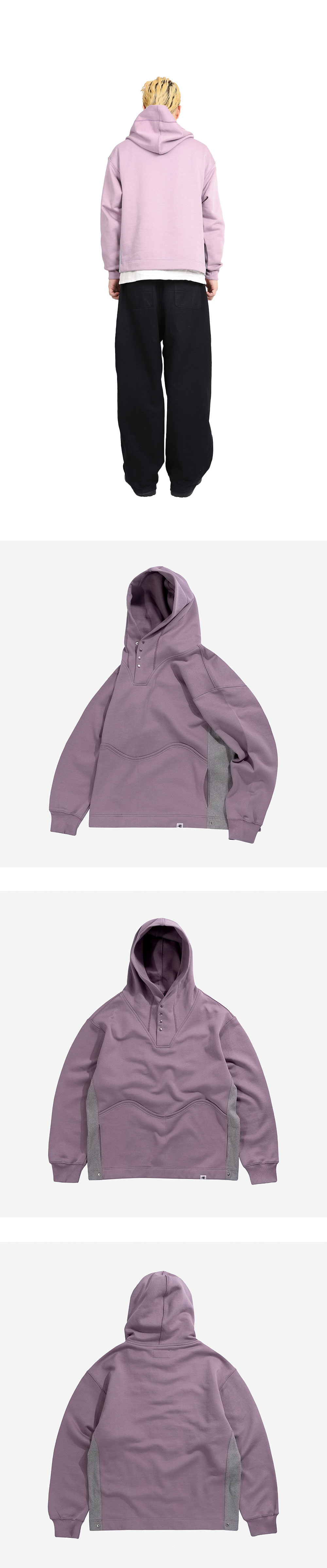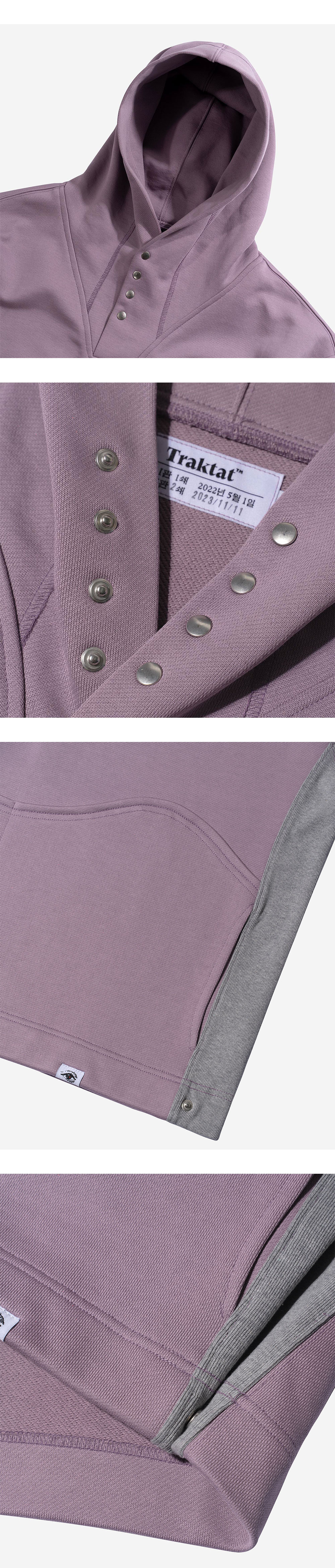 - 투톤 배색 디테일 - 펼친 책을 닮은 오픈 북 포켓 - 사이드 YKK 스냅 어드저스터 : 사이드 배색부의 스냅을 통해 실루엣을 취향껏 조절할 수 있습니다 - 넥라인 4-Button 스냅 : 넥라인 스냅 버튼을 목 끝까지 잠궈 터틀넥처럼 연출할 수 있습니다 - 밑단 스냅 보강 스티치 처리 - 고시감과 광택이 있는 면 100% 루프 원단