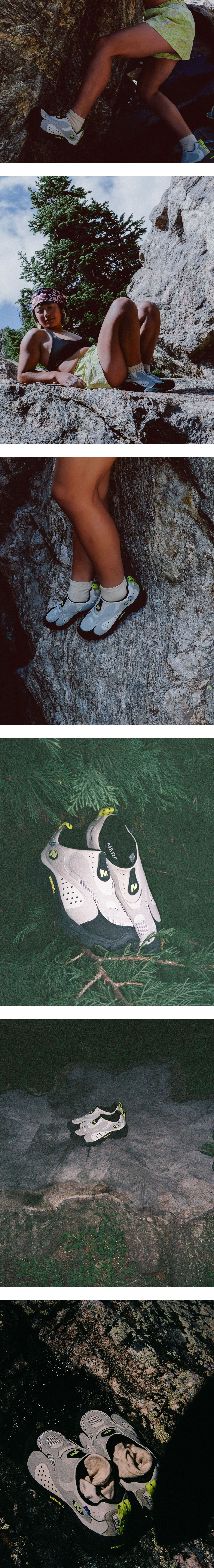 12월 13일 수요일 오전 11시 판매 예정입니다. 뉴욕 기반으로 활동하는 디자이너 Nicole McLaughlin과의 콜라보레이션 제품으로 재활용 소재에 중점을 두고 제작되었습니다. Sustainability와 Upcycling을 최우선으로 하는 McLaughlin의 디자인 정신에 충실하여 어퍼는 재활용 헤더 메시, 폼, 스웨이드를 포함한 혼합직물로 제작되었으며, 미드솔은 고무칩이 포함되어 버핑처리된 재활용 EVA로 만들어졌습니다. - 100% 재활용 천연가죽 스웨이드, 합성가죽, 메시 어퍼 - 신고 벗기 편한 Neoprene Stretch Collar - 100% 재활용 Webbing, 통기성 Mesh, Footbed Cover, EVA Foam Footbed - 뒤꿈치 충격을 줄여주고 안정성을 높여주는 Merrell Air Cushion 내창 - 뛰어난 접지력의 Merrell Sticky Rubber 아웃솔